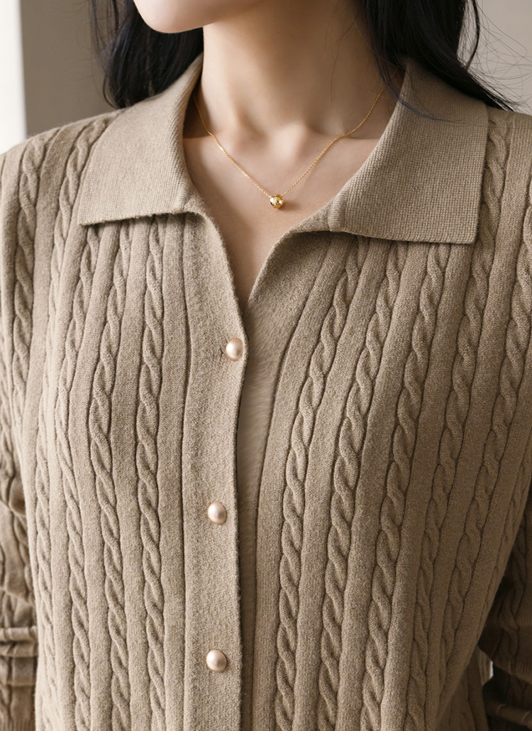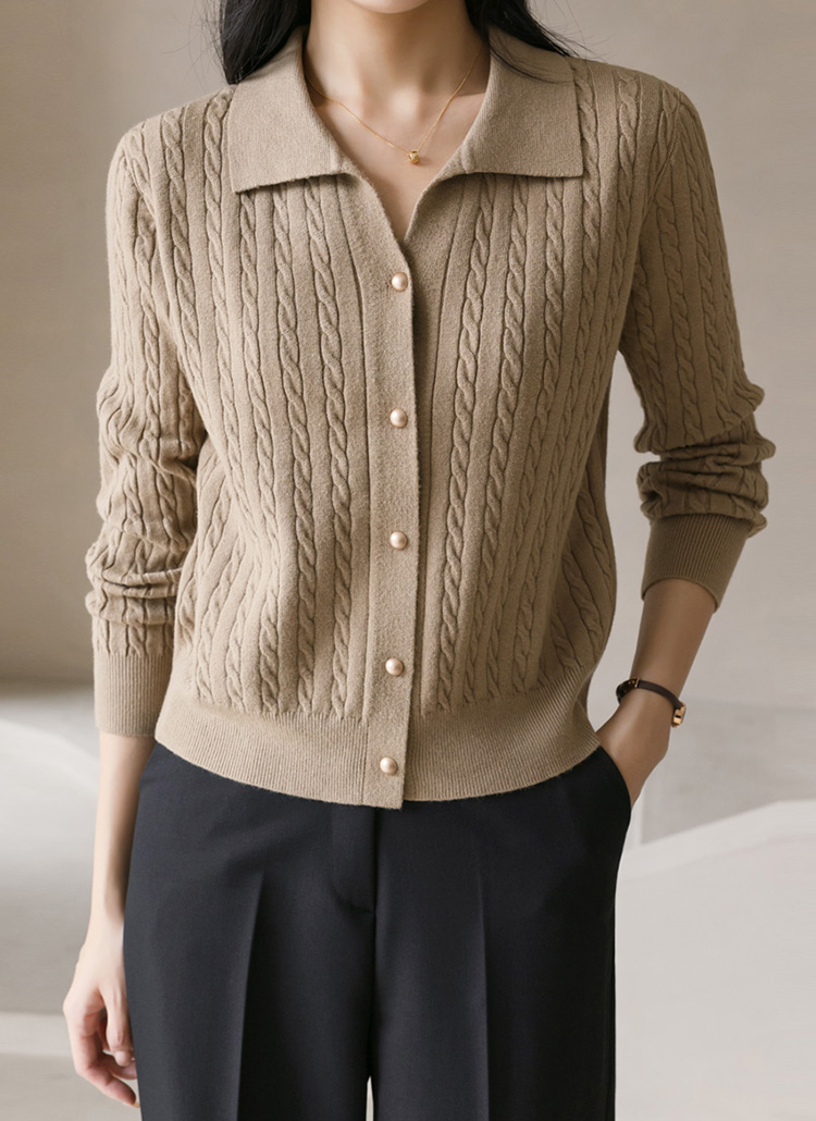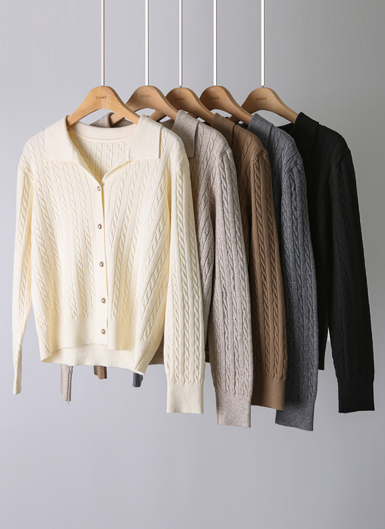 트렌디한 꽈배기 원사에 무광 골드버튼으로