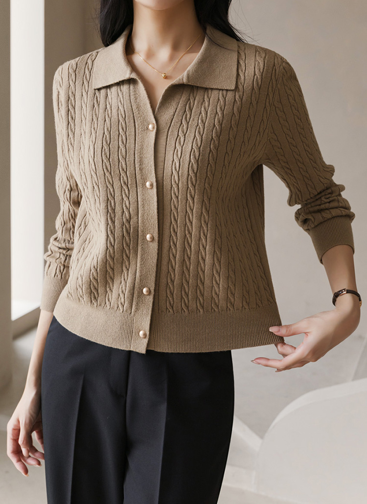 트렌디한 꽈배기 원사에 무광 골드버튼으로