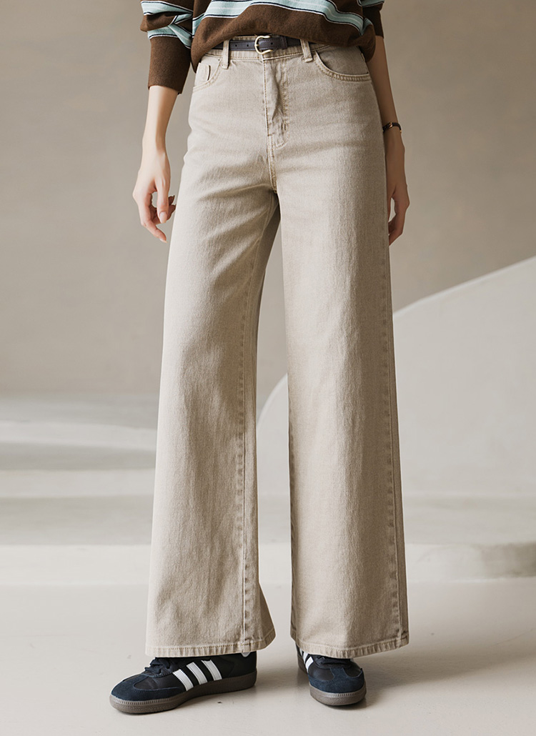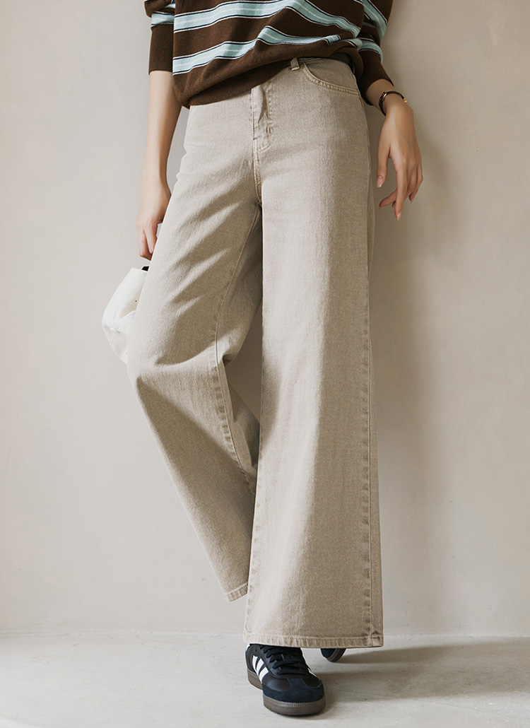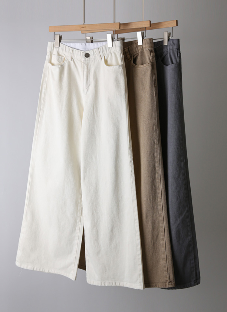 [Theonme] 베이즐 컬러 가먼트다잉 부츠컷 와이드 팬츠