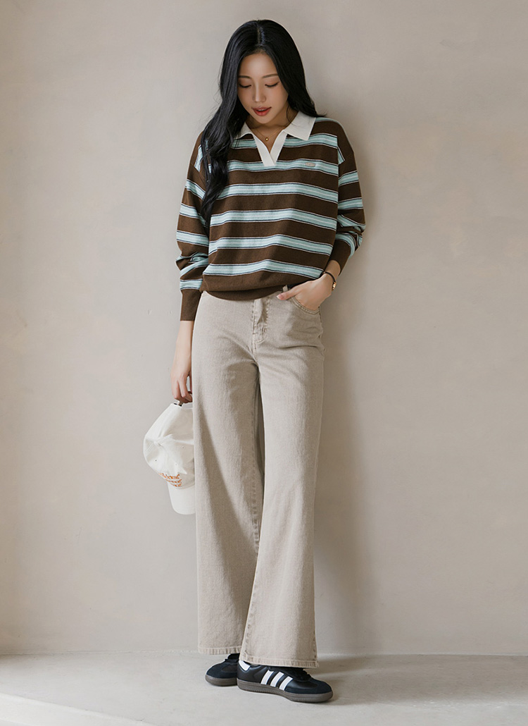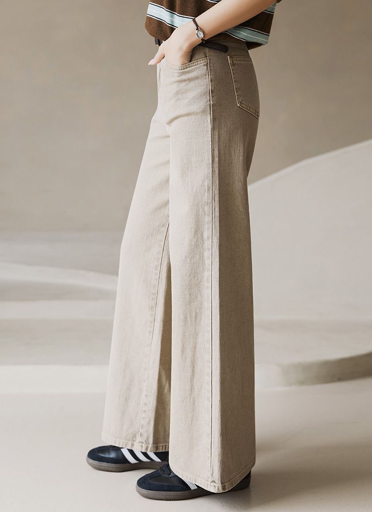 밑단에서 살짝 퍼지는 와이드 핏으로