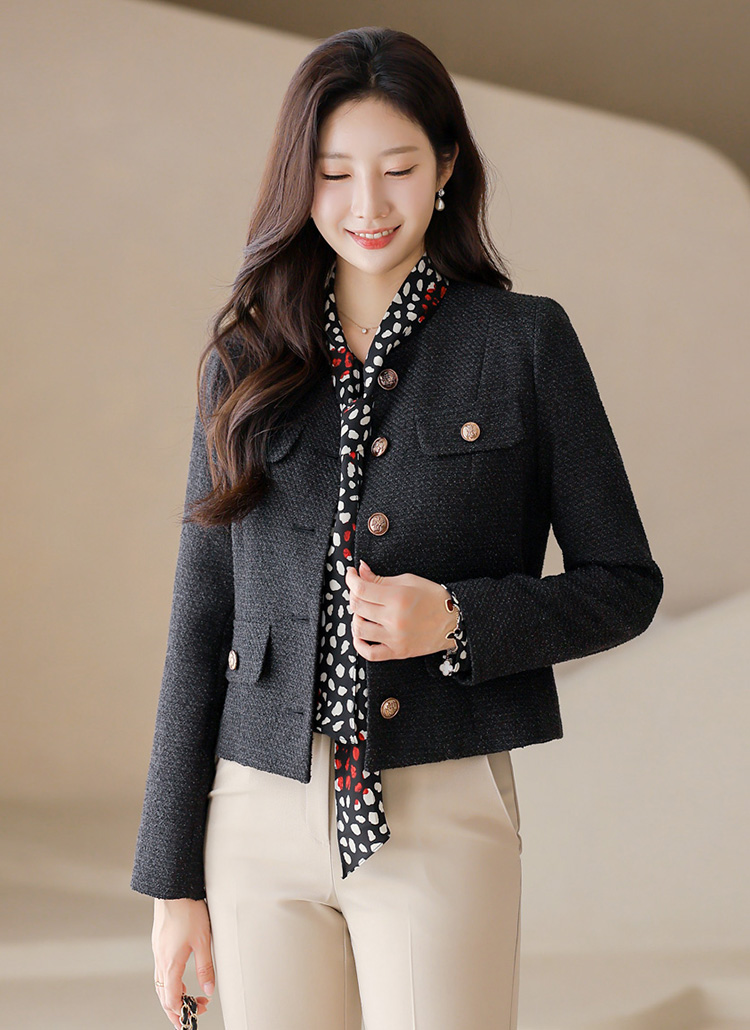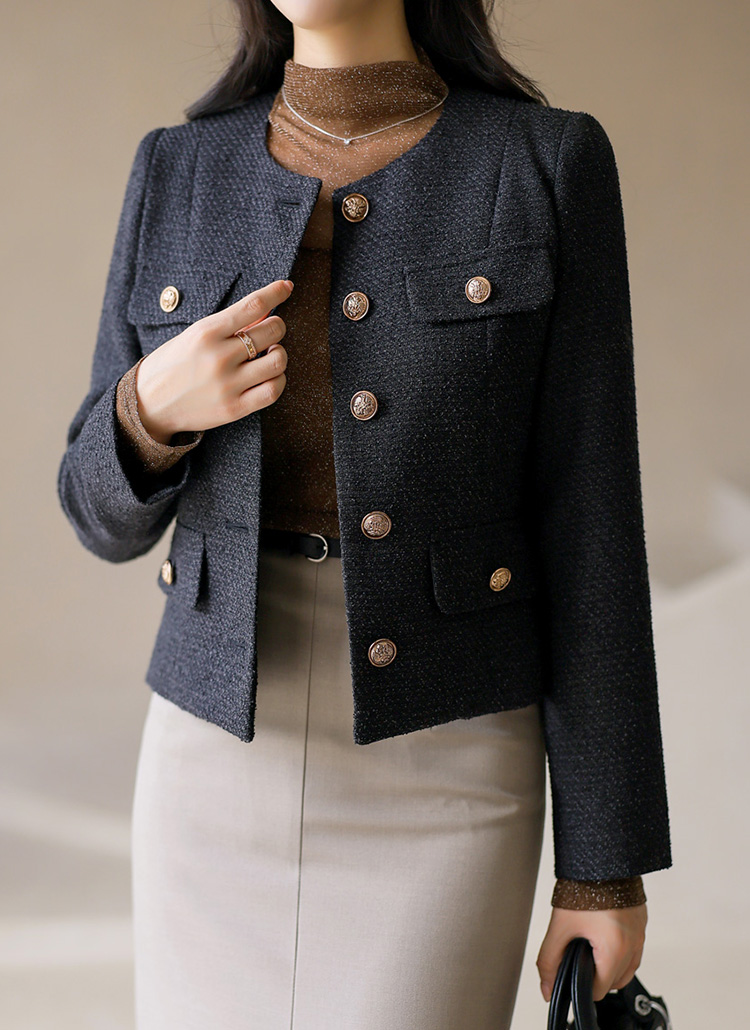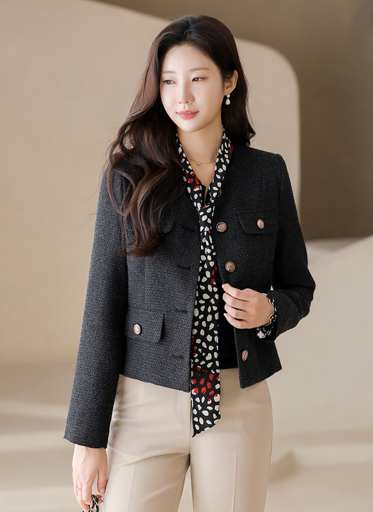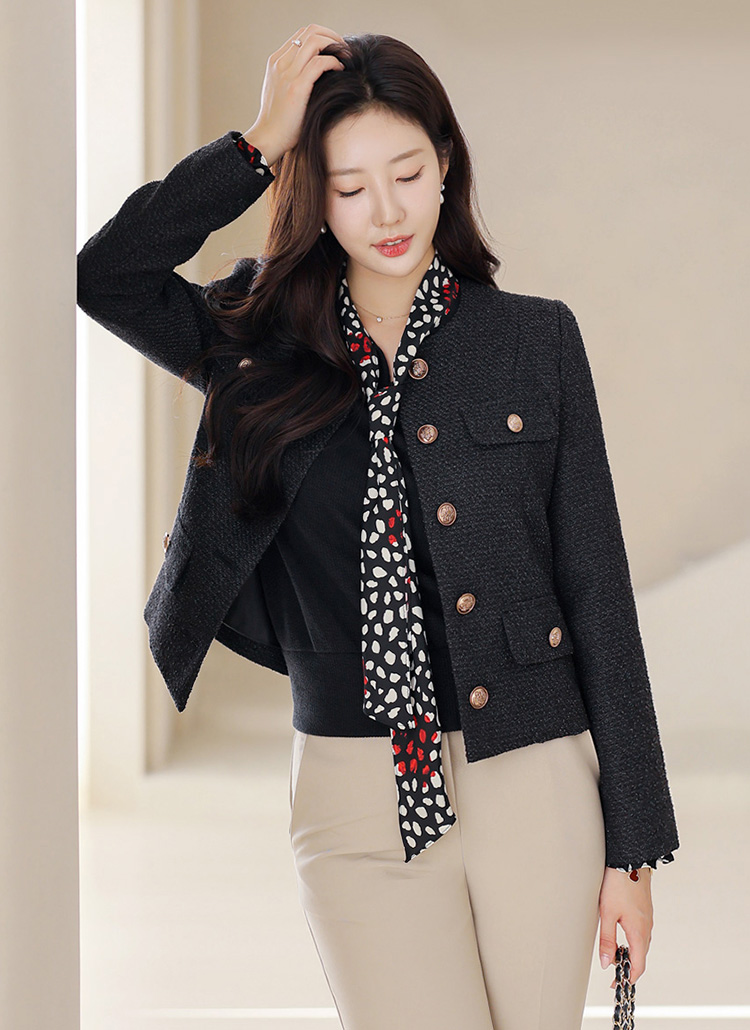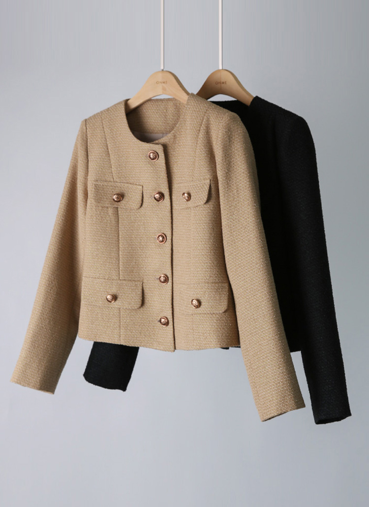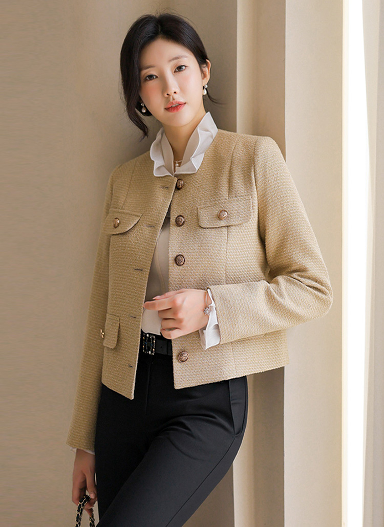 [LouisAngel] 라무르 어텀 무드 그레이스 골드 펄 트위드 노카라 자켓