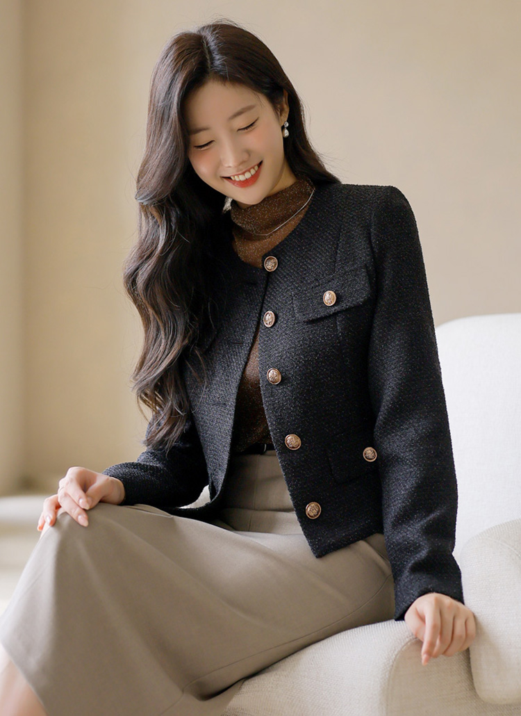 골드 펄사를 가미해주어 더 화사하고 퀄리티있게 돋보이는 트위드 소재에