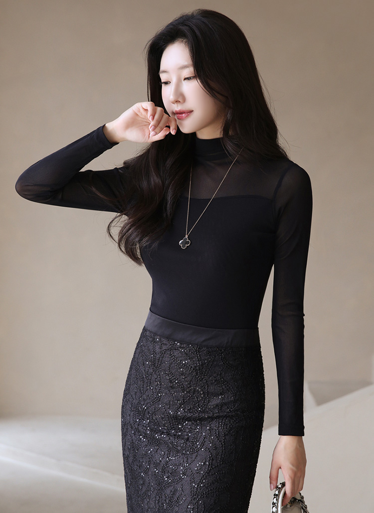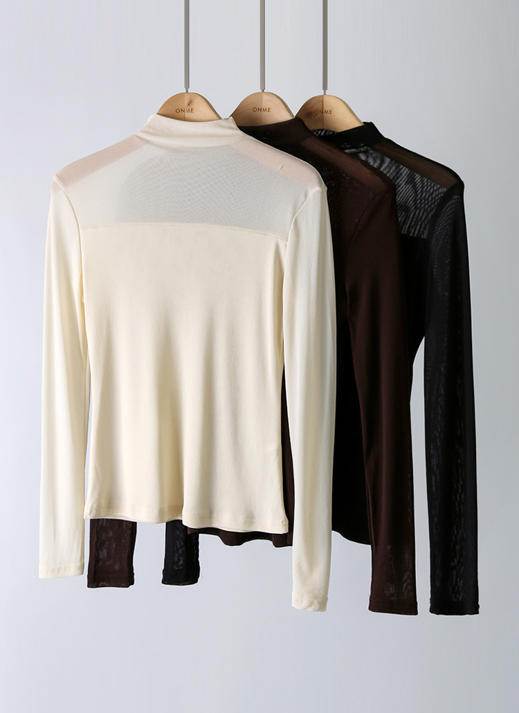 로젤라 시스루 레이어드 스판 반목 폴라 티셔츠