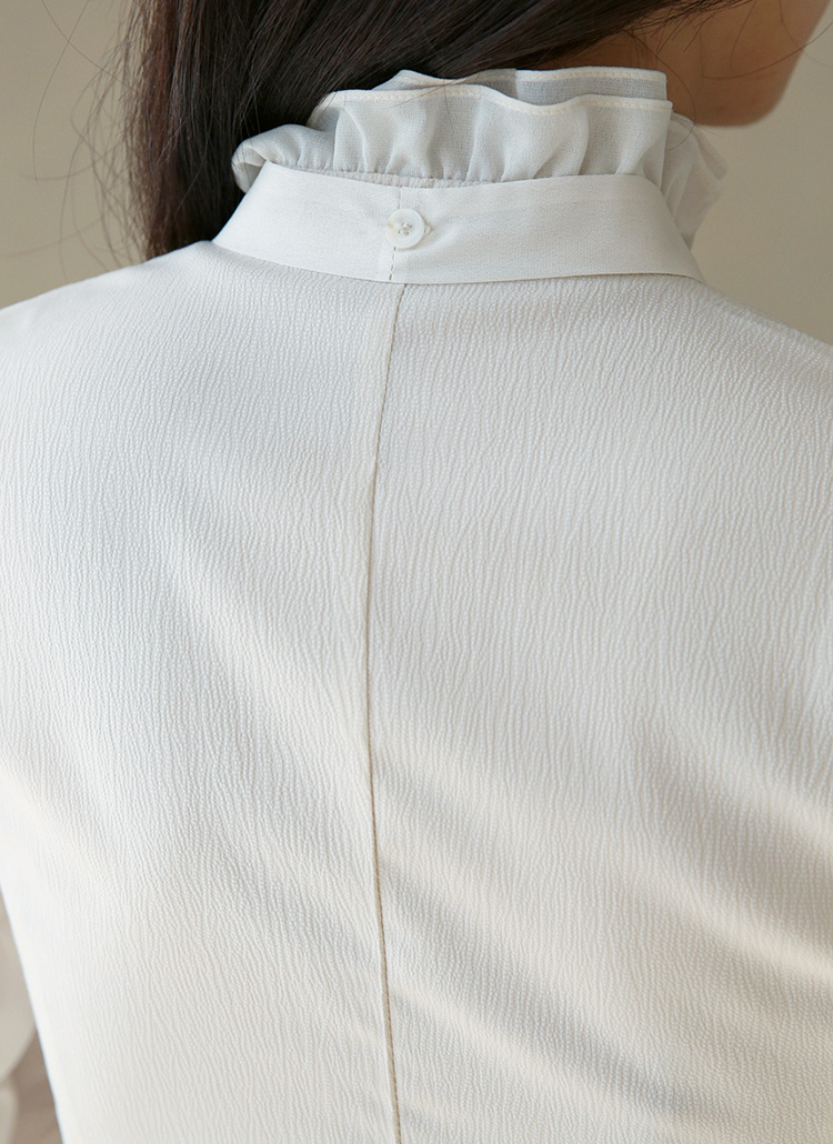 넥라인과 소매에 더해진 러플이 고급스러움을 더하며