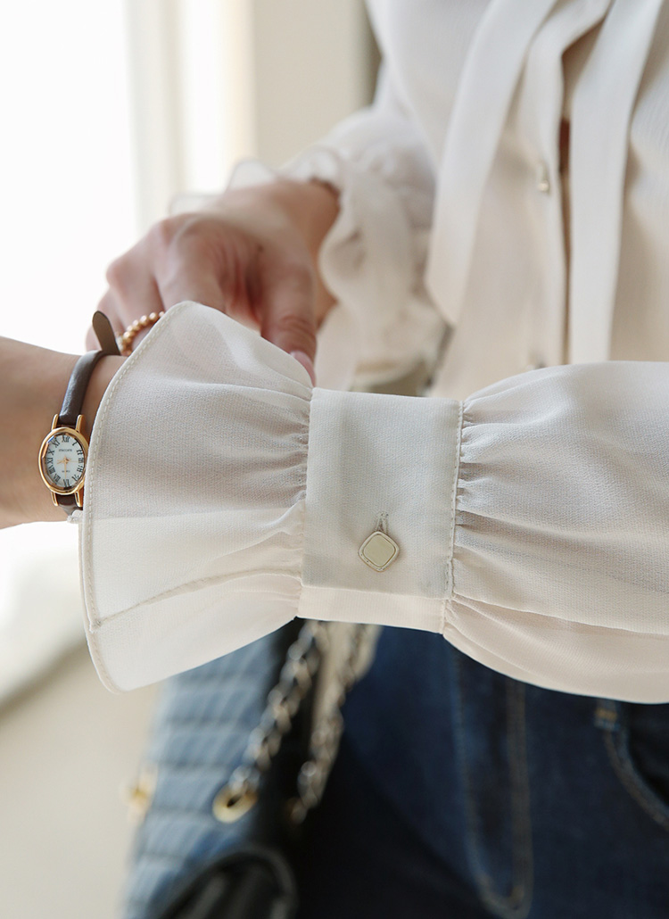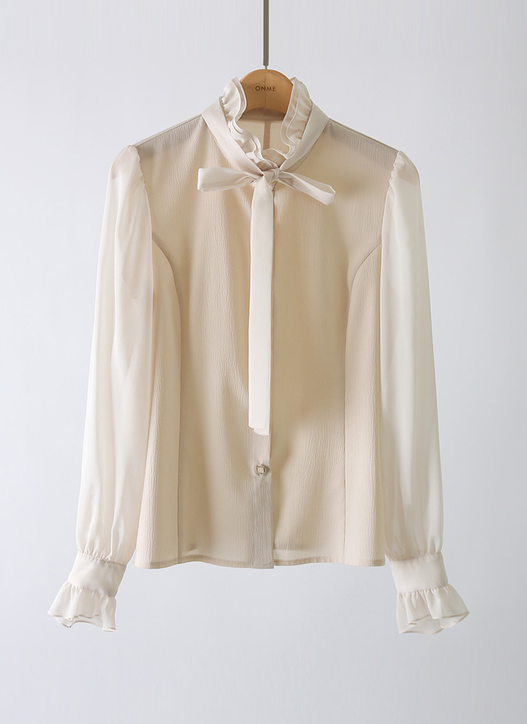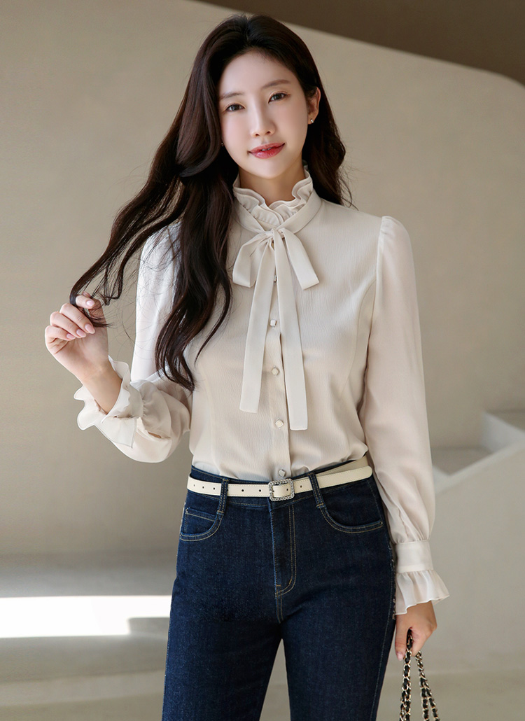 [LouisAngel] 퓨어크림 리본SET 러플넥 페미닌라인 블라우스