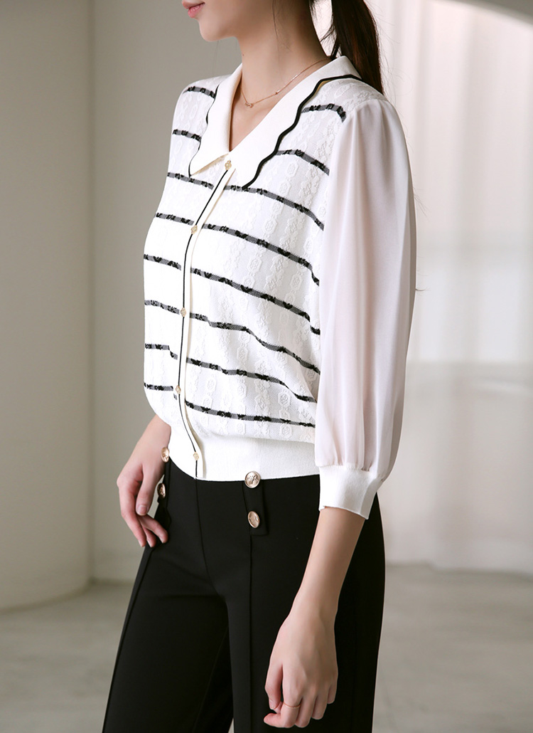 여리여리 쉬폰 소매와 물결 카라 디자인으로