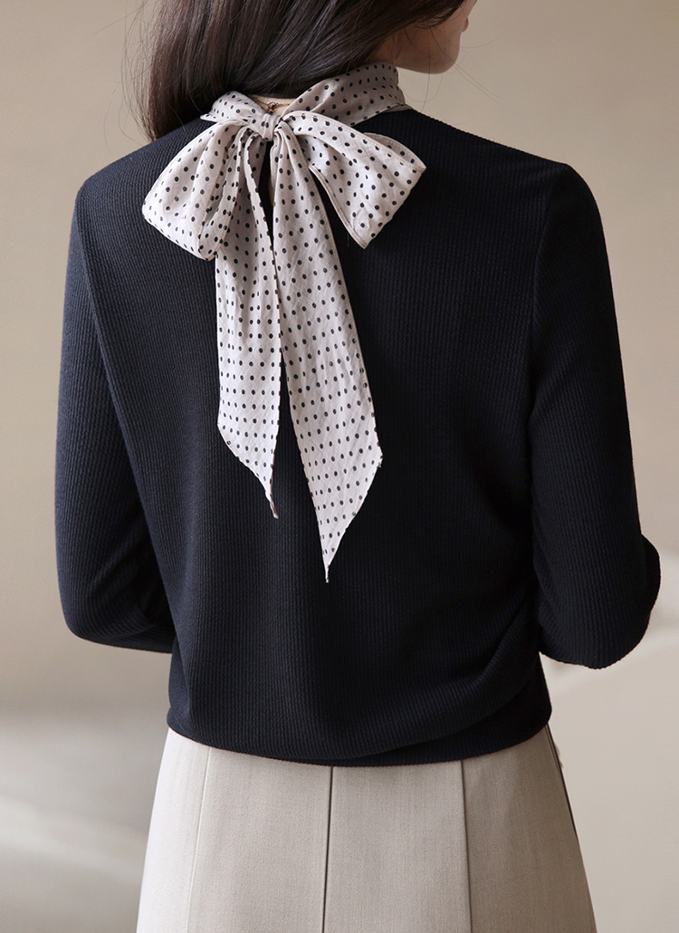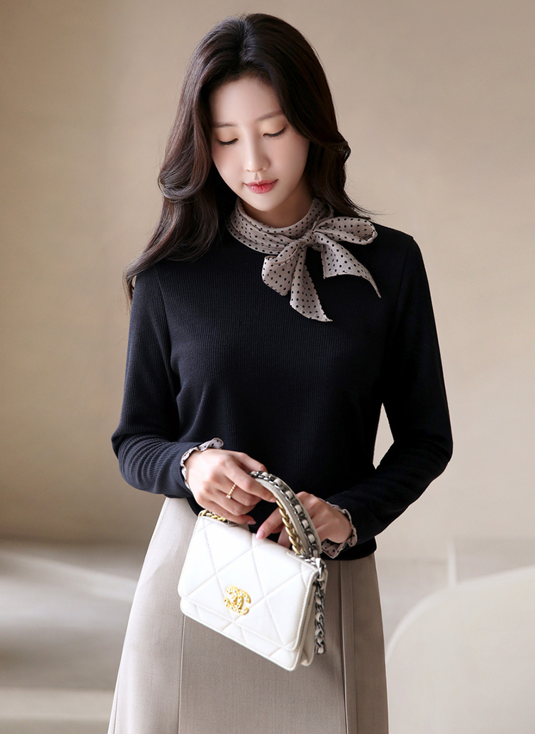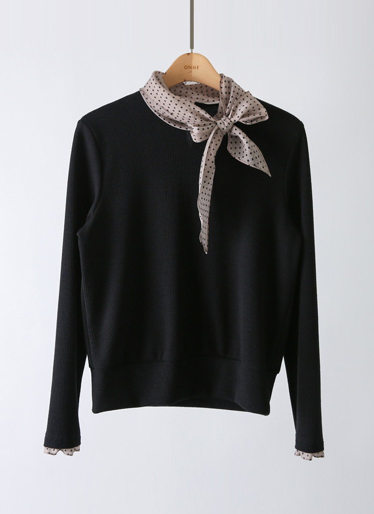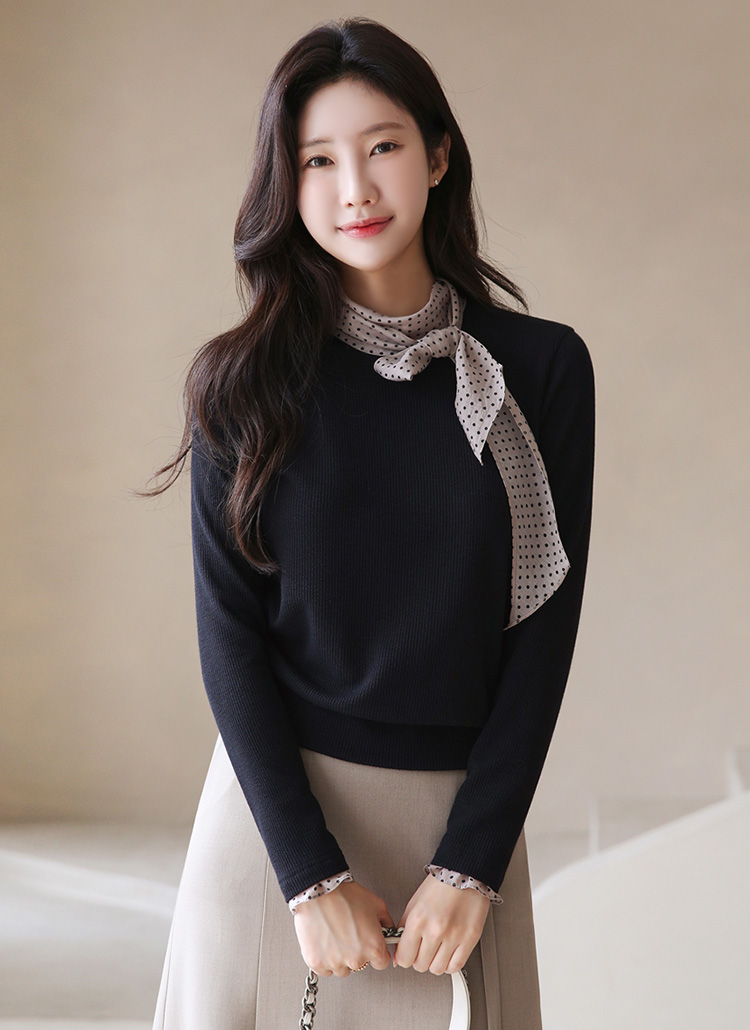 [LouisAngel] 투웨이 도트 스카프 레이어드 골지 블라우스 티