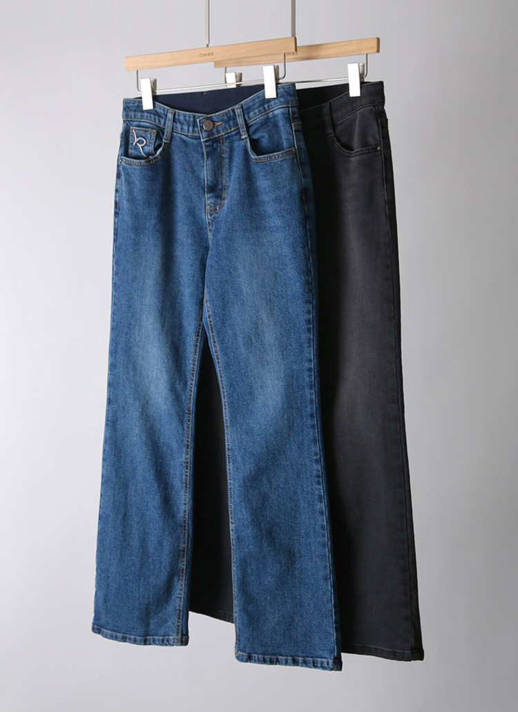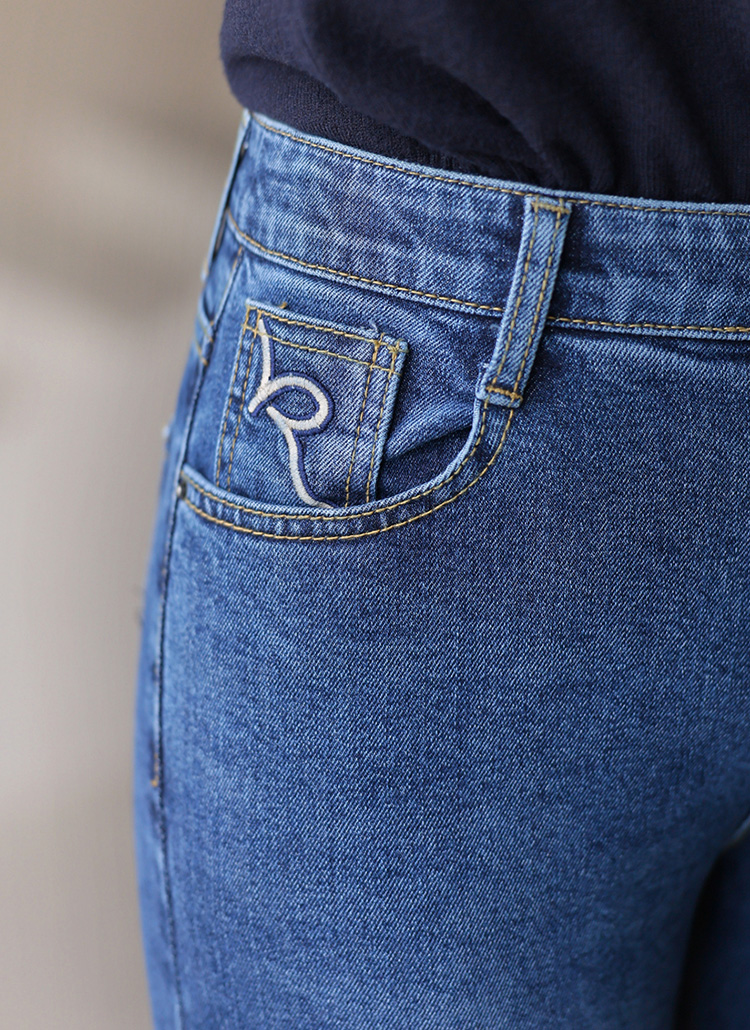 라라비 레터링 자수 크루크 워싱 포인트 슬림 부츠컷 데님 팬츠
