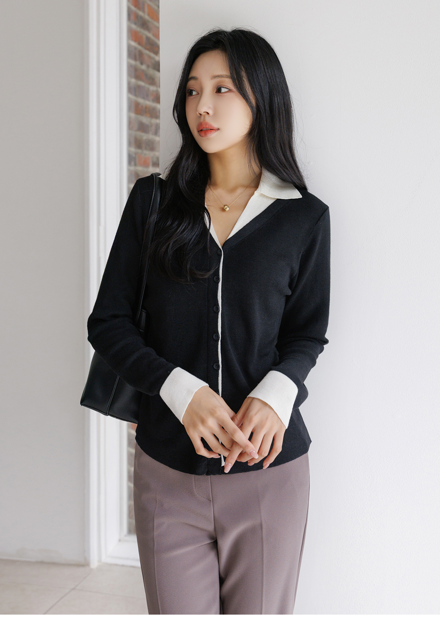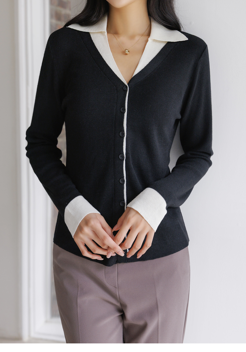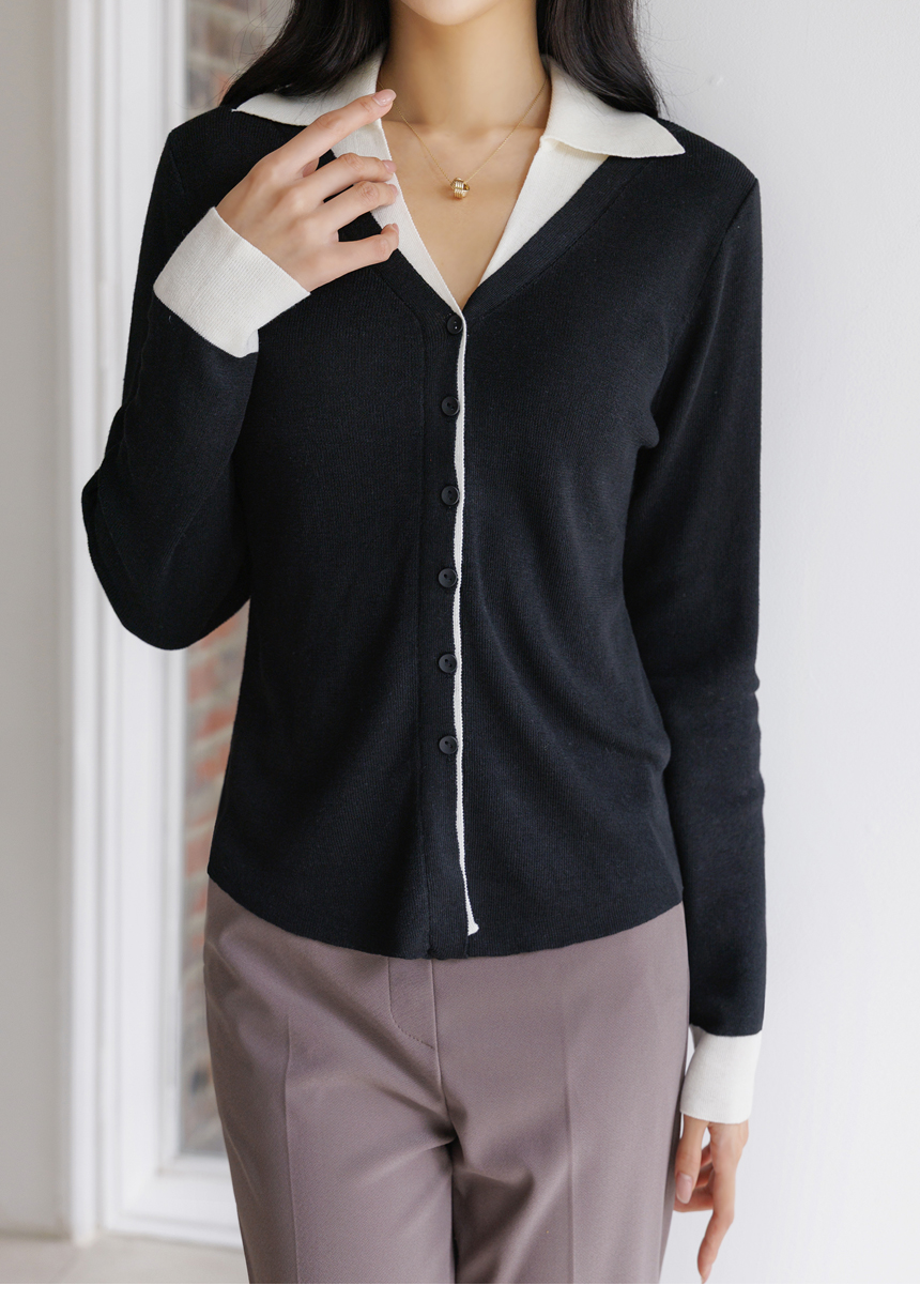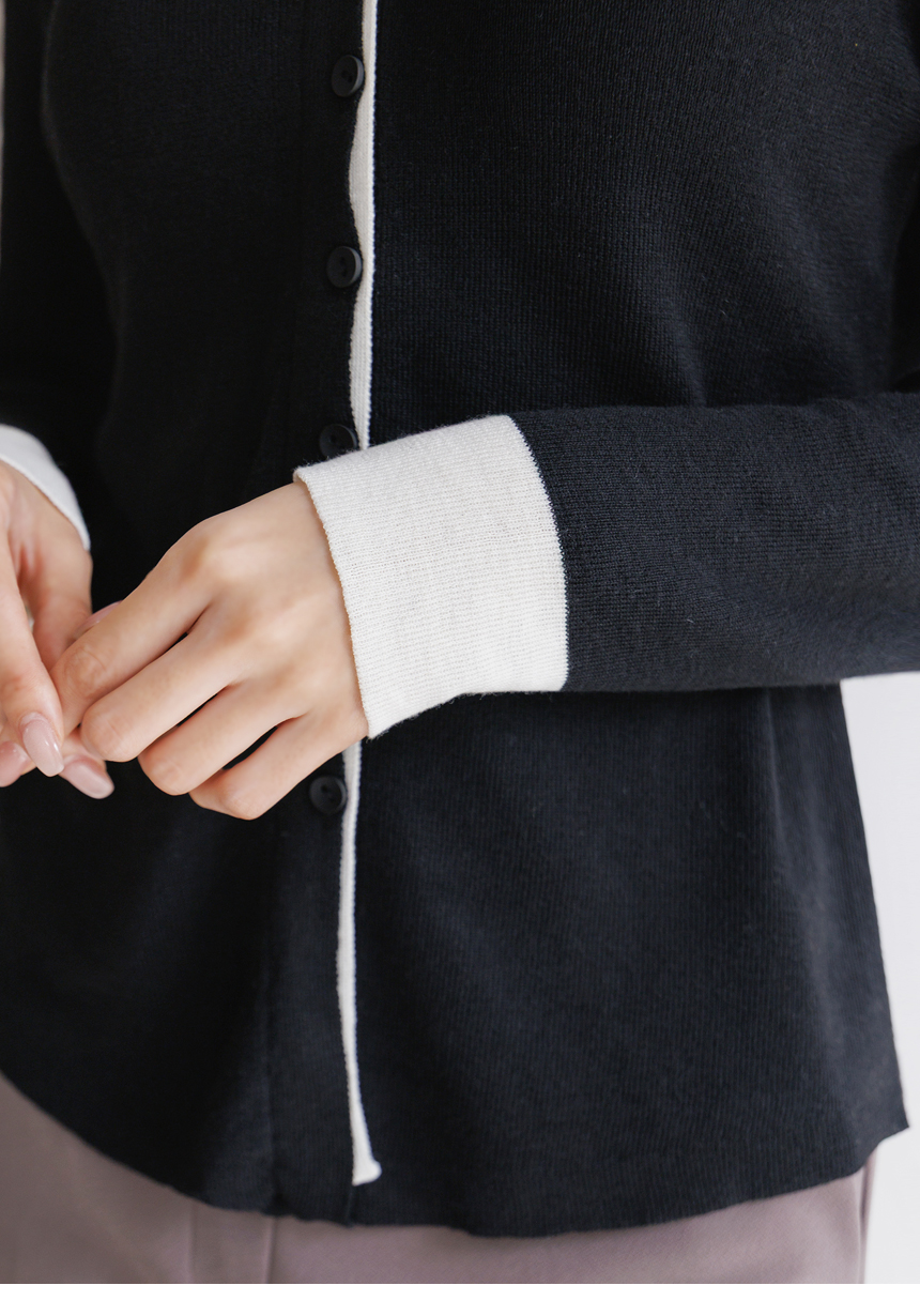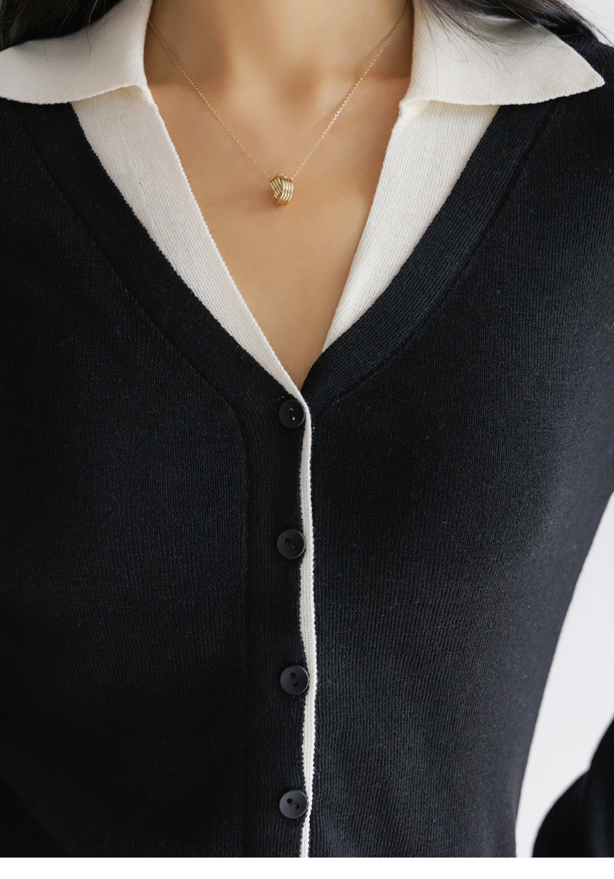 [Theonme] 올렌도 배색 이중카라 레이온 니트 가디건