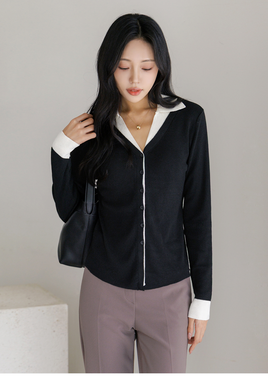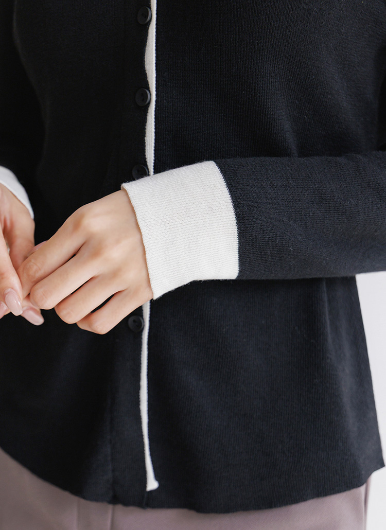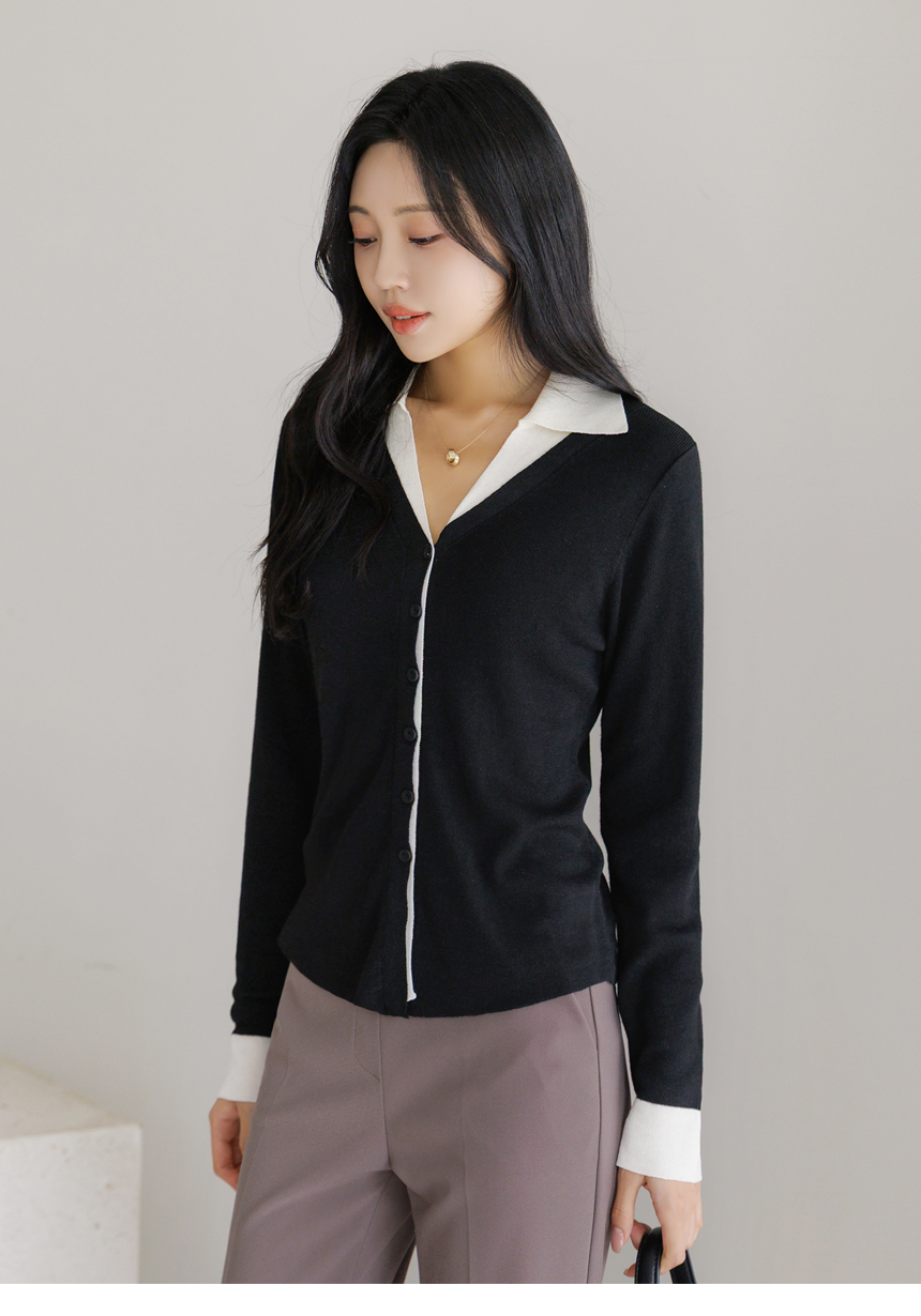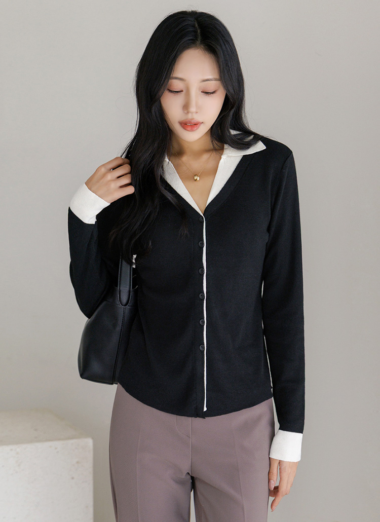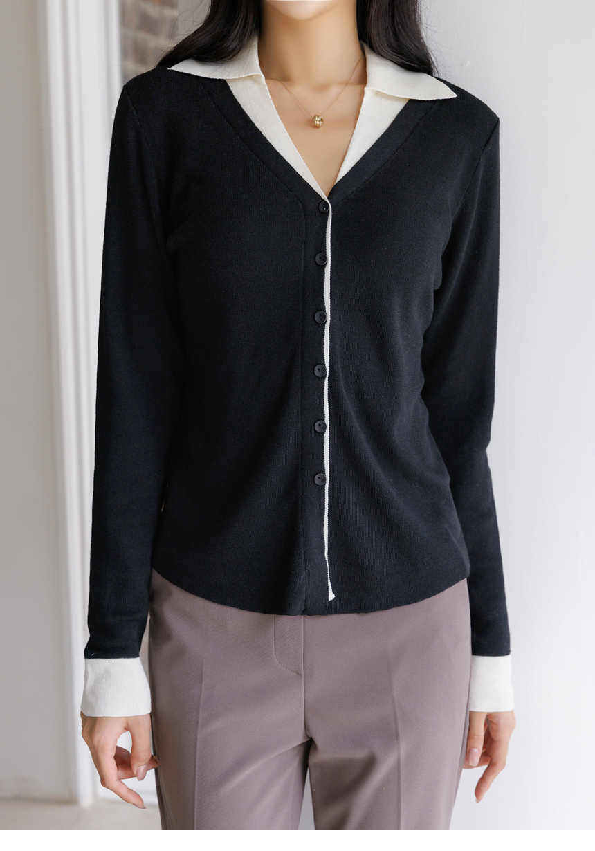 [Theonme] 올렌도 배색 이중카라 레이온 니트 가디건