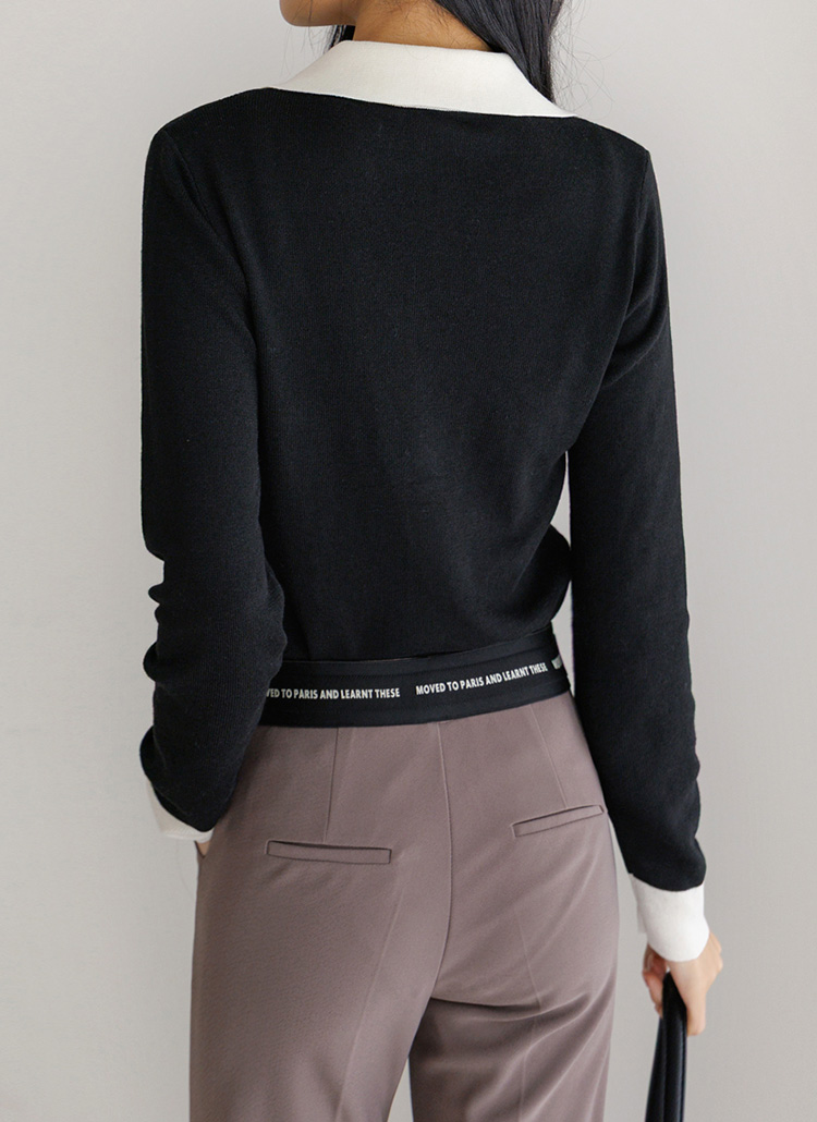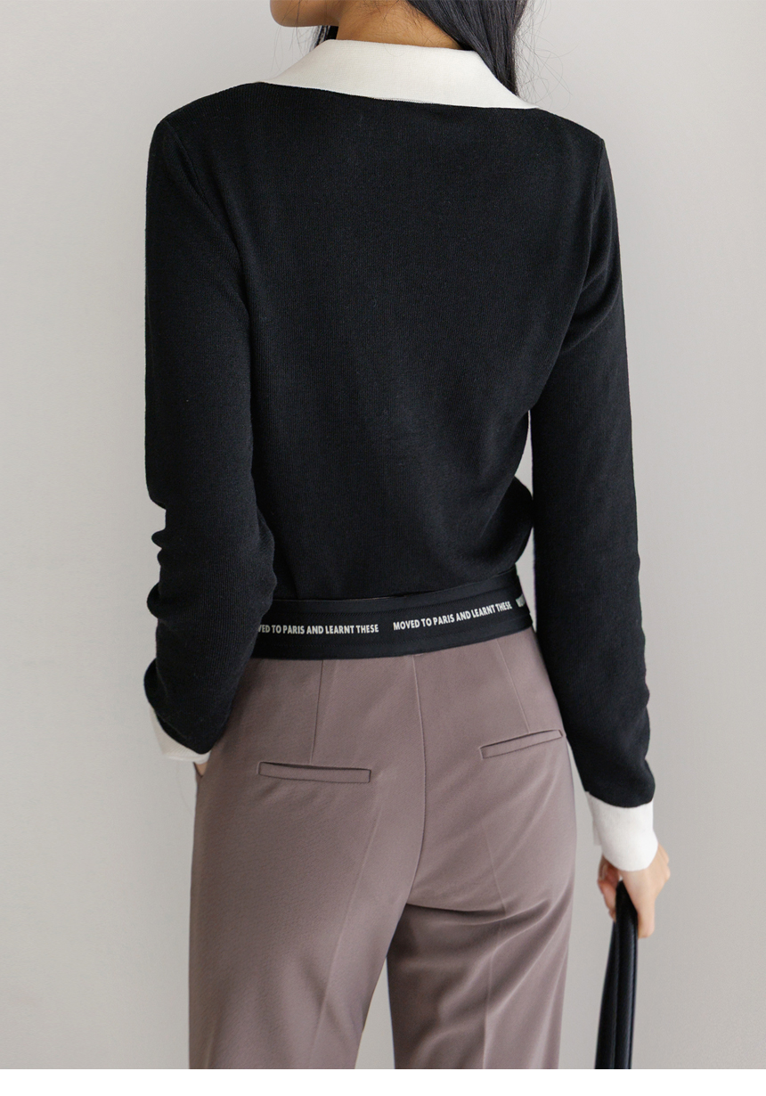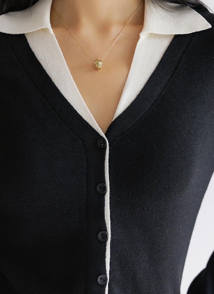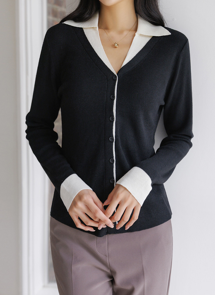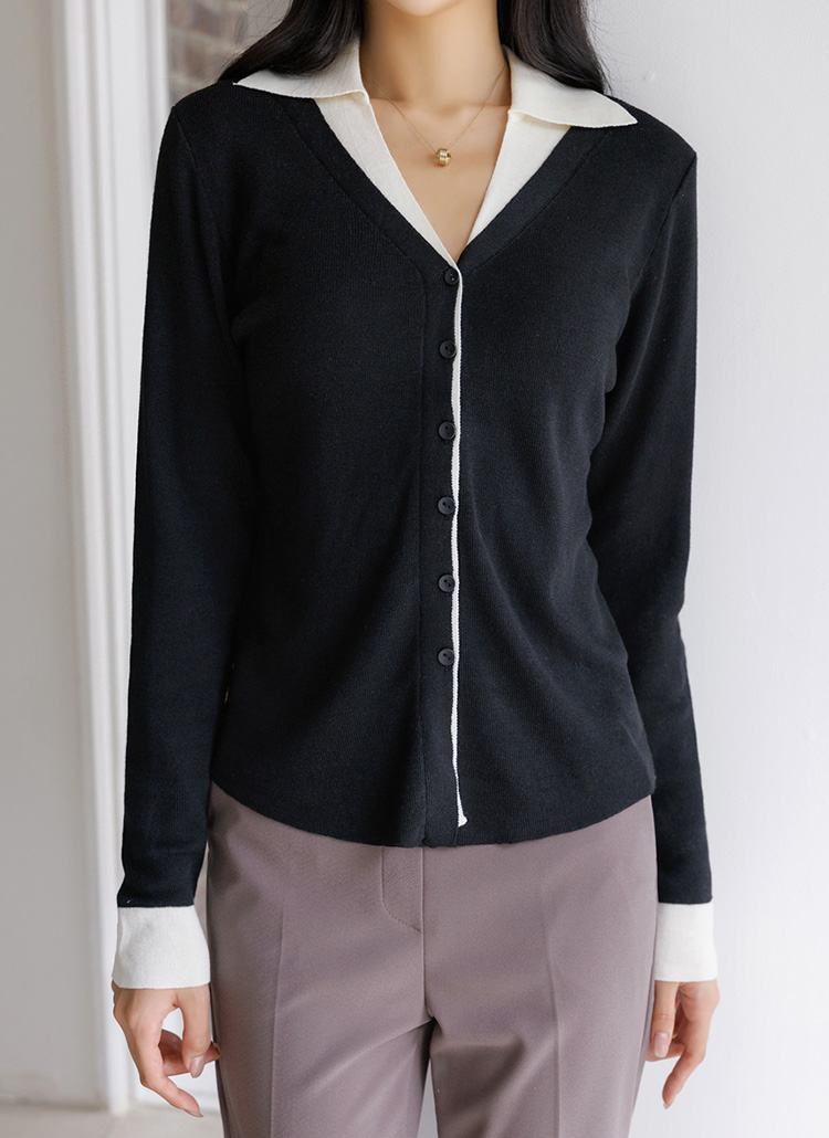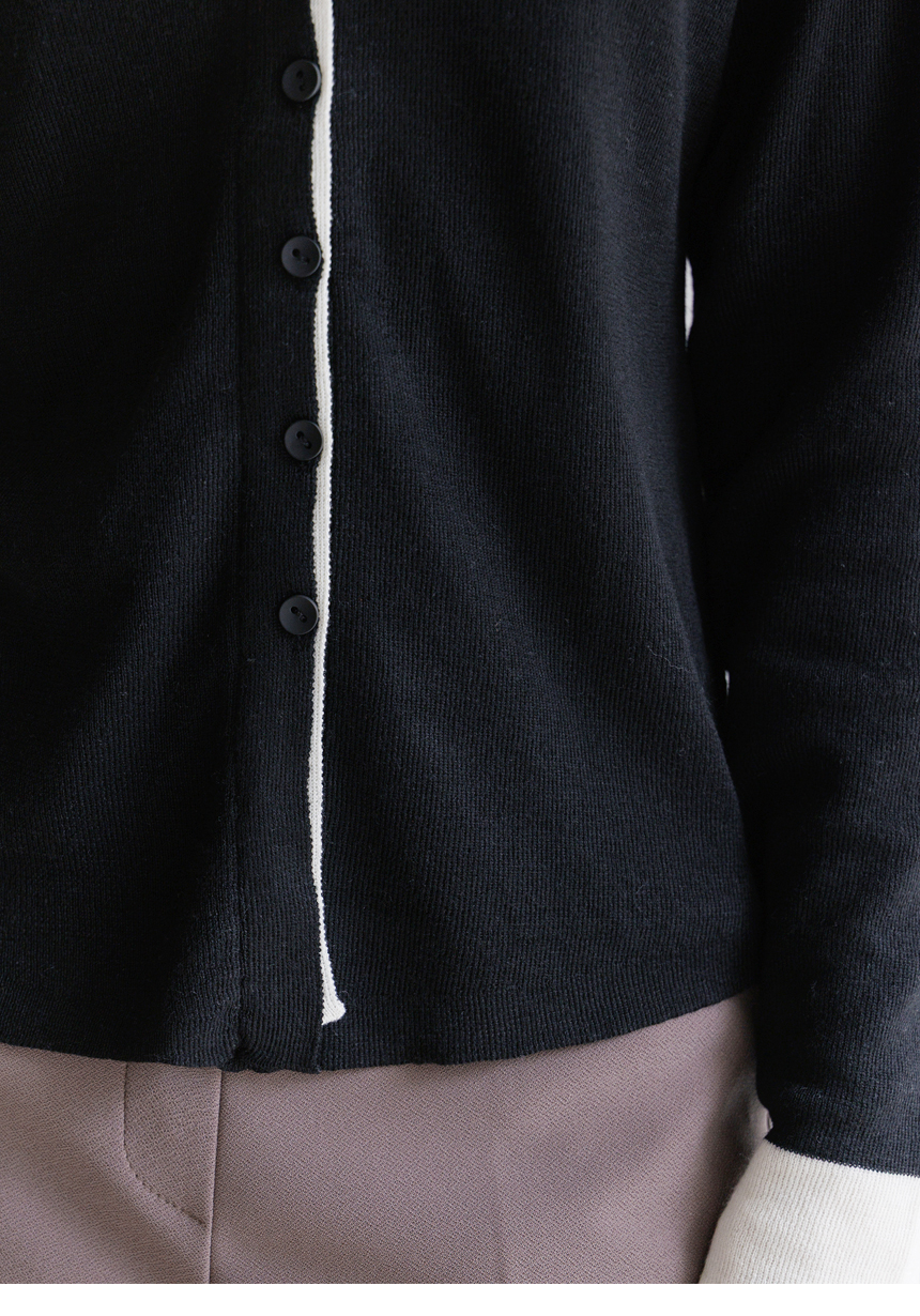 [Theonme] 올렌도 배색 이중카라 레이온 니트 가디건