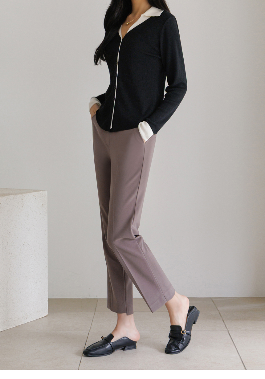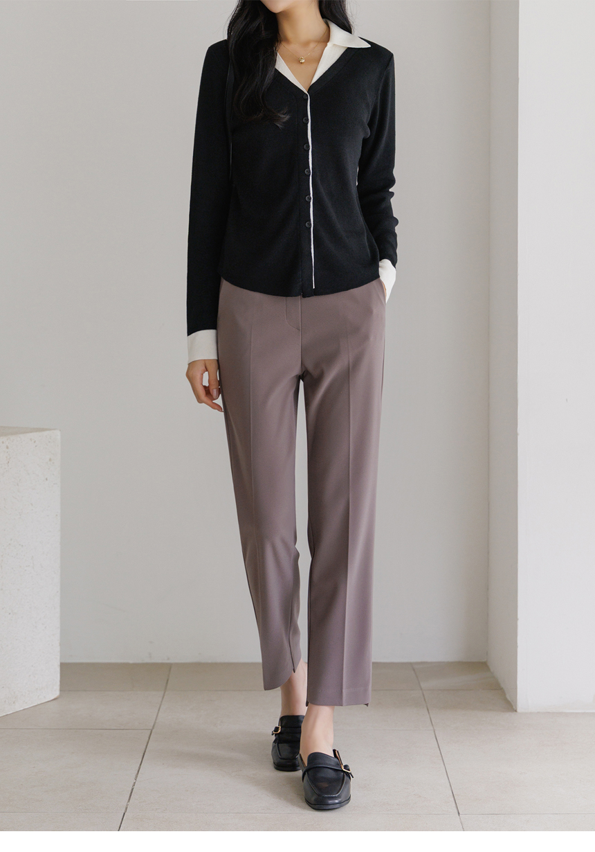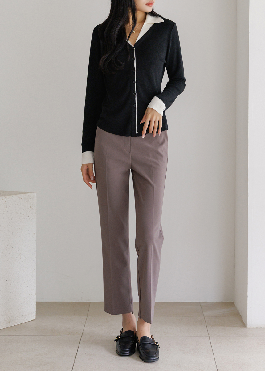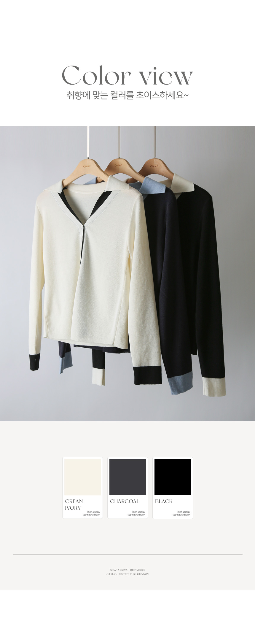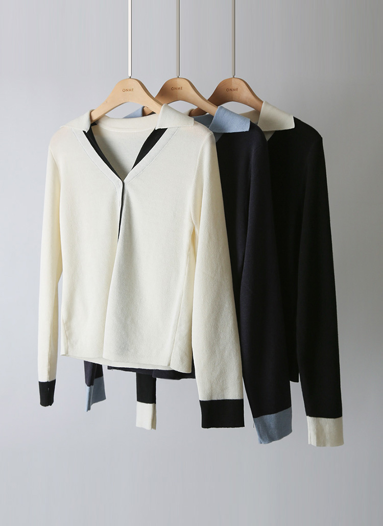 배색된 이중 카라 디자인으로 세련된 포인트를 준