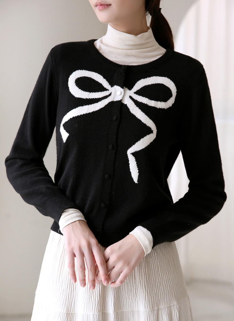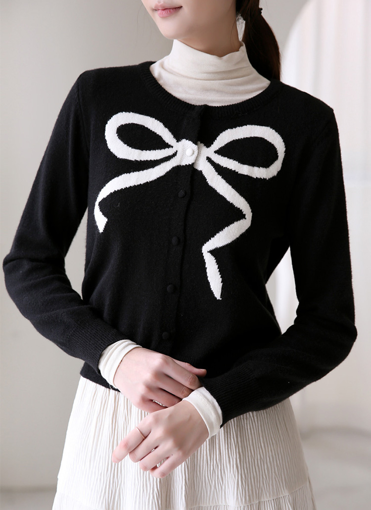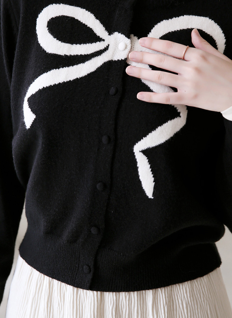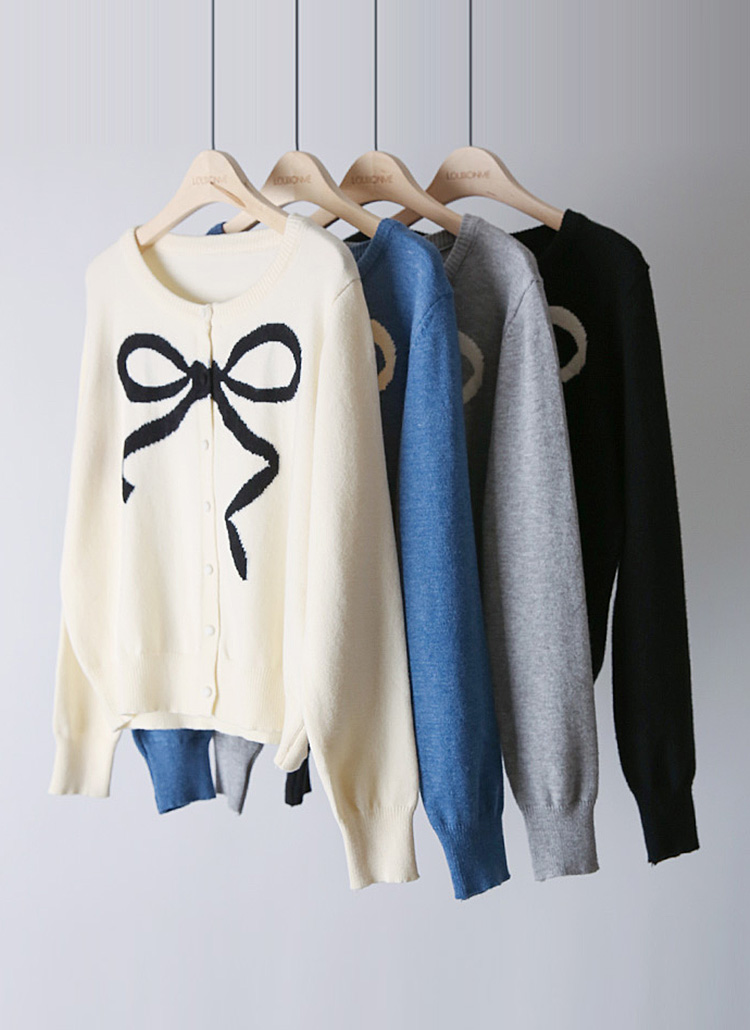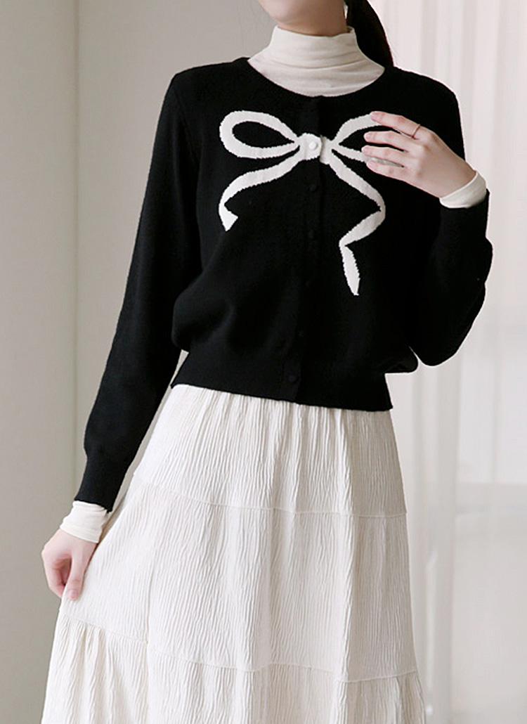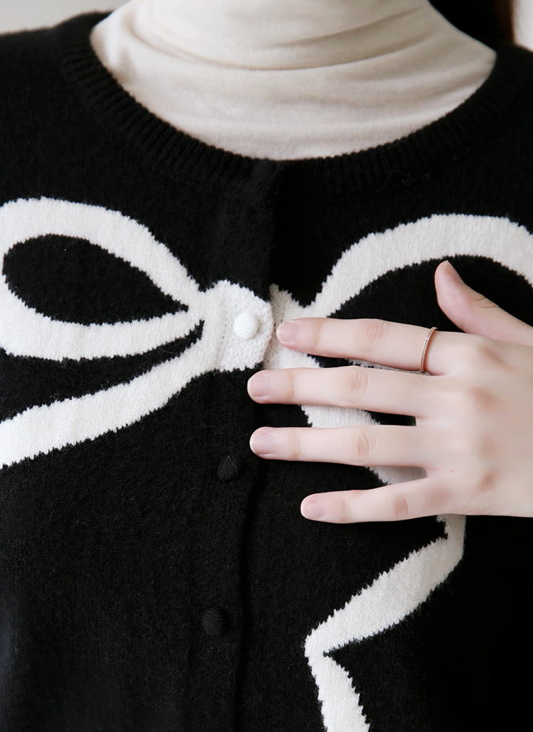 베릴스 리본 포인트 배색 라운드 니트 가디건