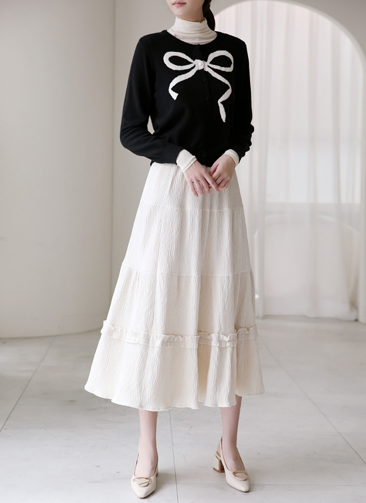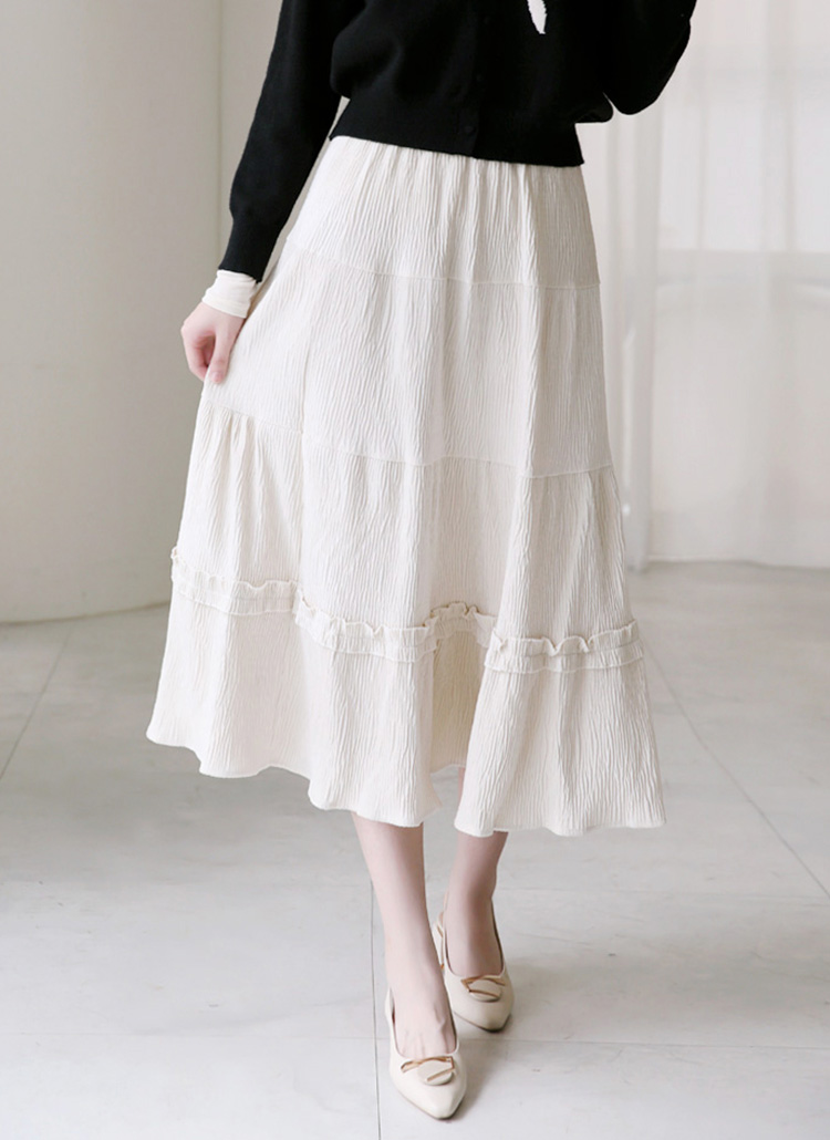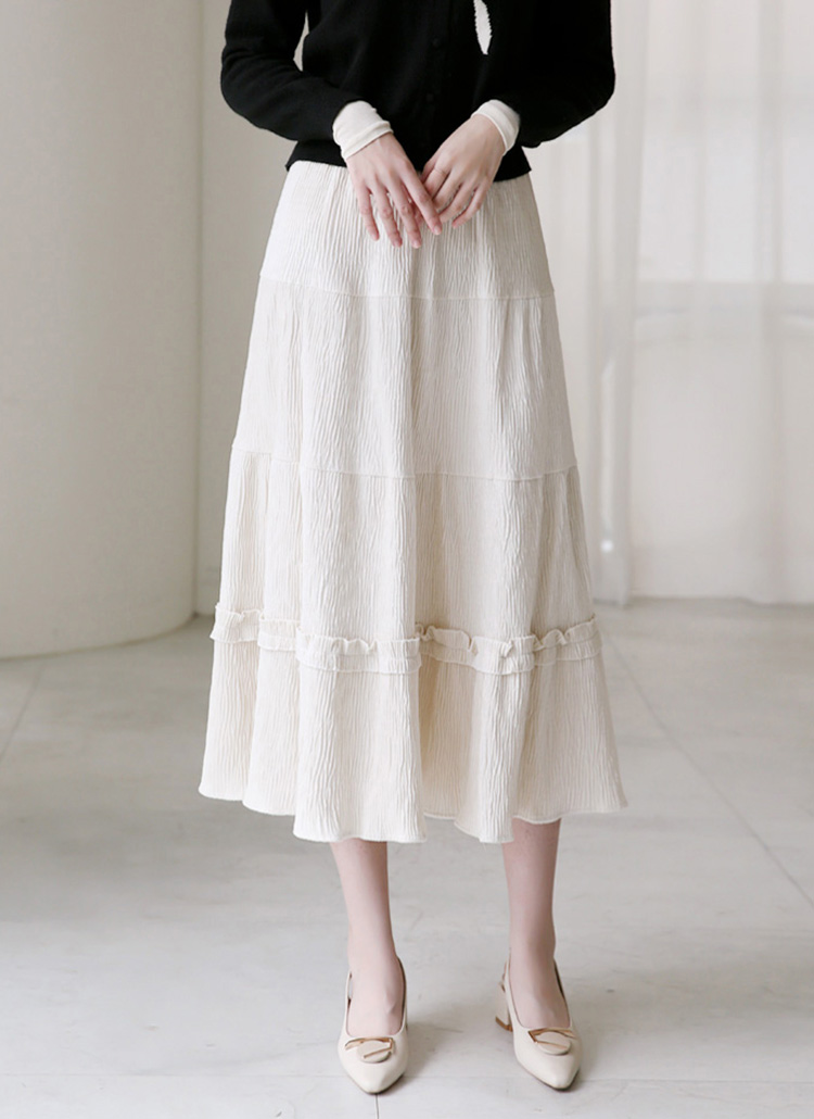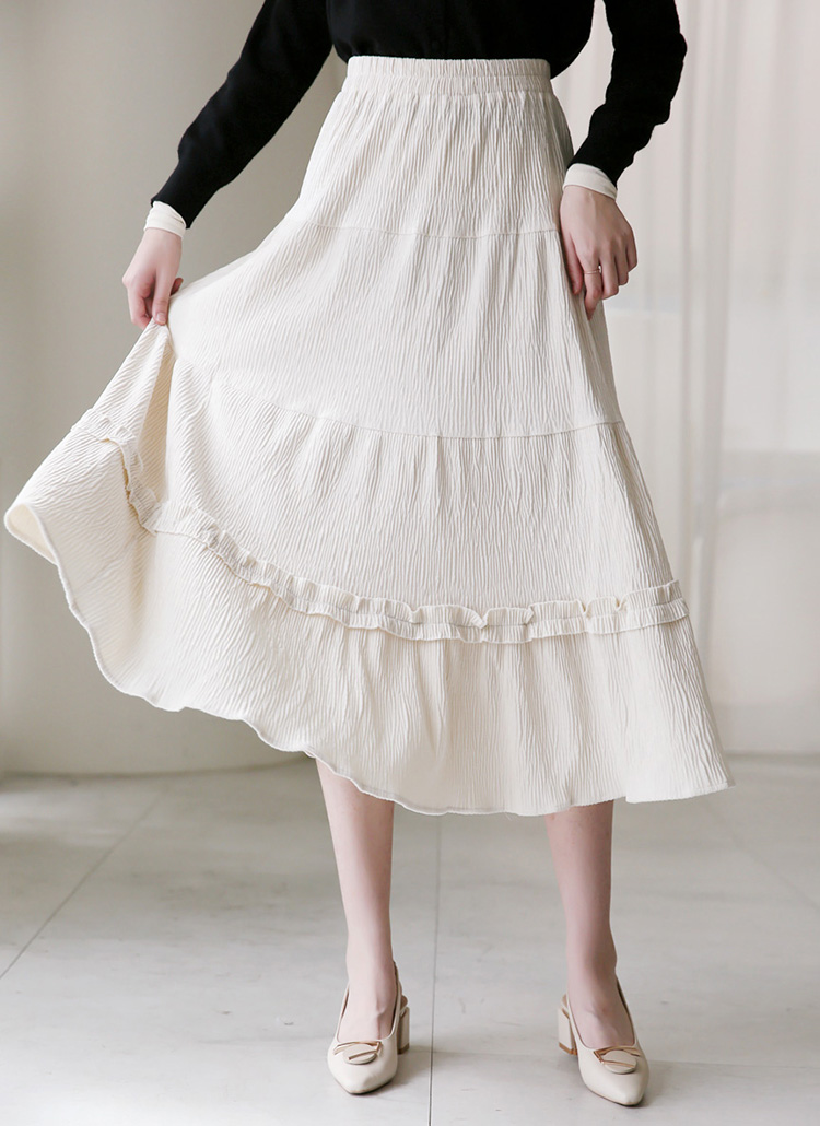 루이블 물결 라인 쟈가드 캉캉 플레어 A라인 롱 스커트