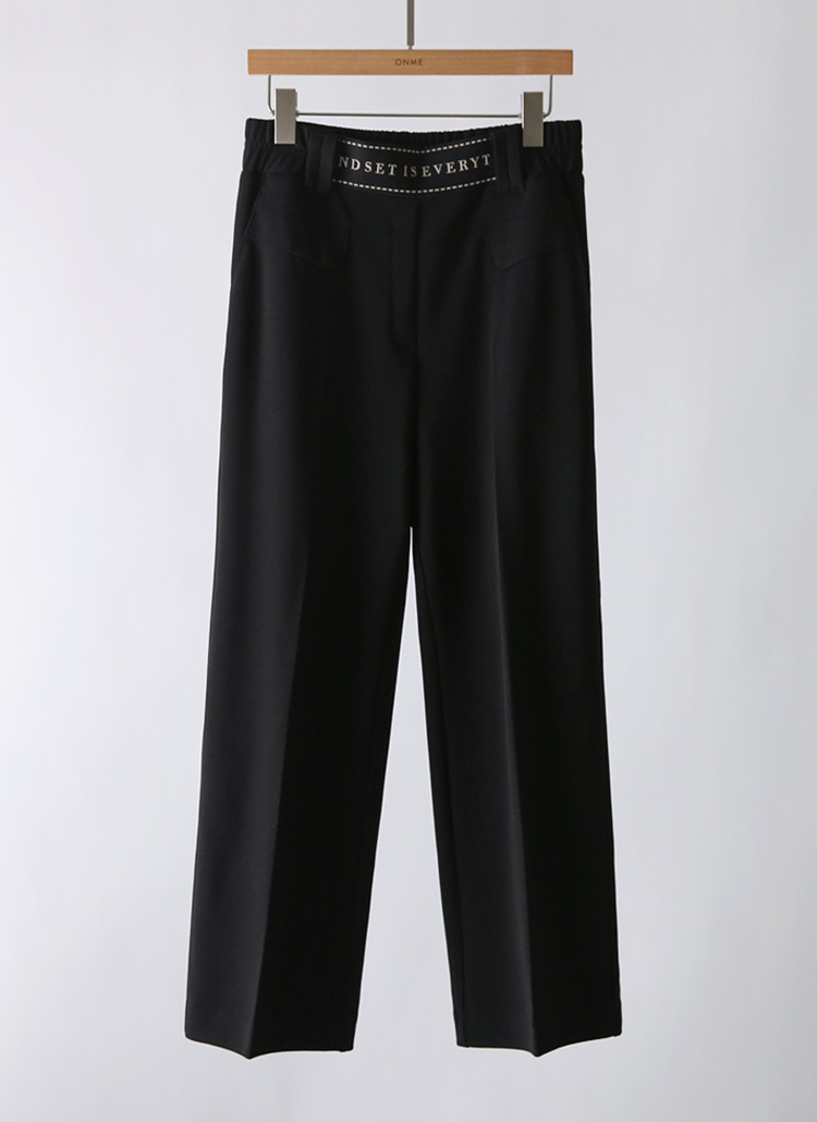 볼로드 레터링 밴딩 배색 일자 핏 스판 슬랙스 팬츠