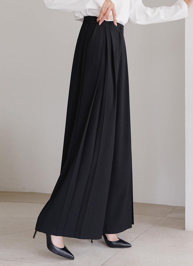 [Theonme] 프리엔 절개 핀턱 드레시 와이드 슬랙스 팬츠