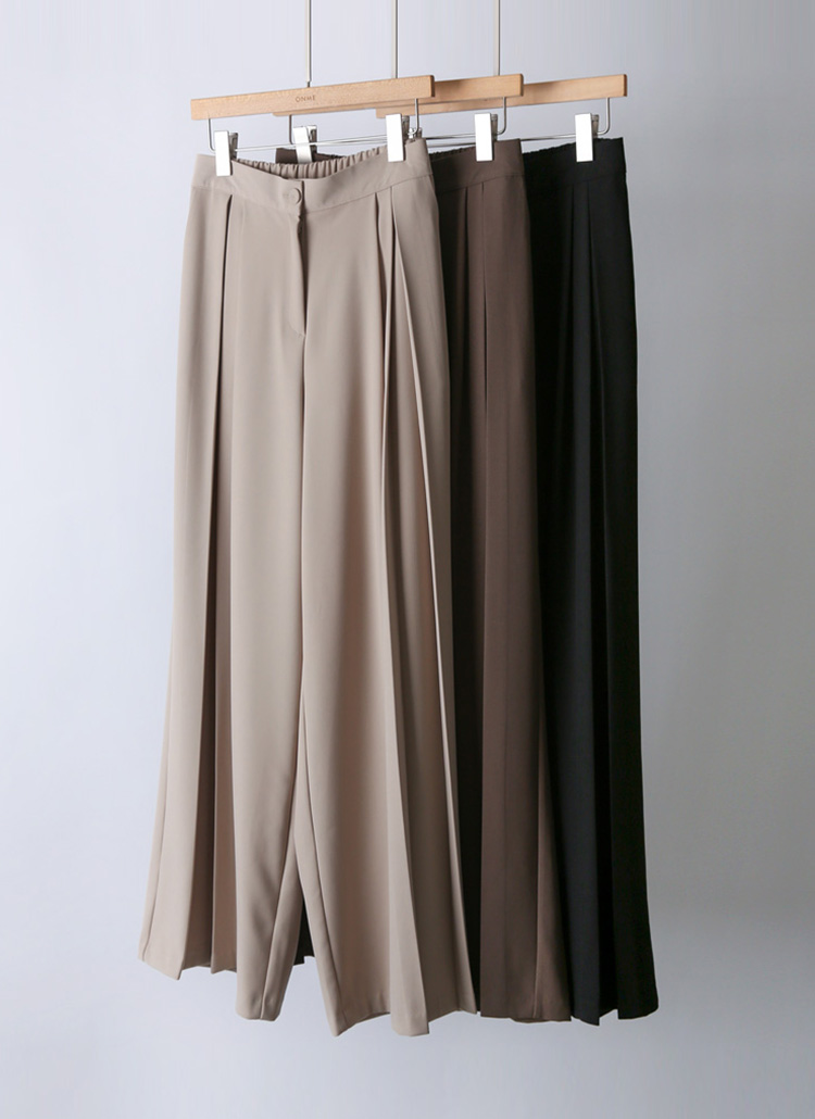 세련된 핀턱 절개로 와이드한 실루엣을 완성해주며