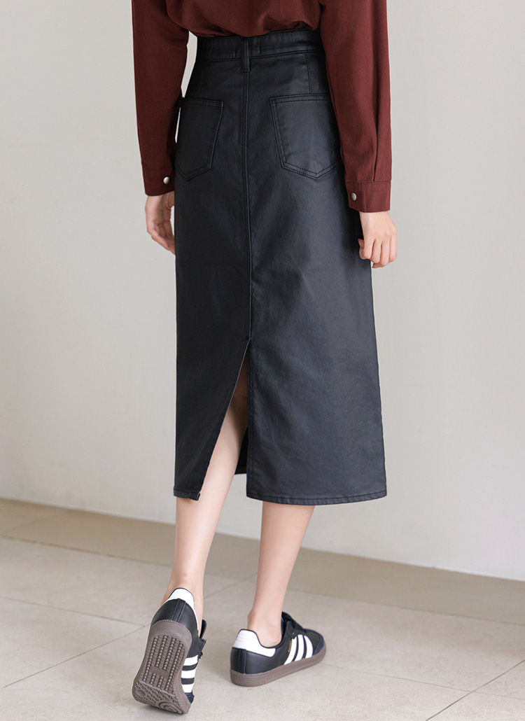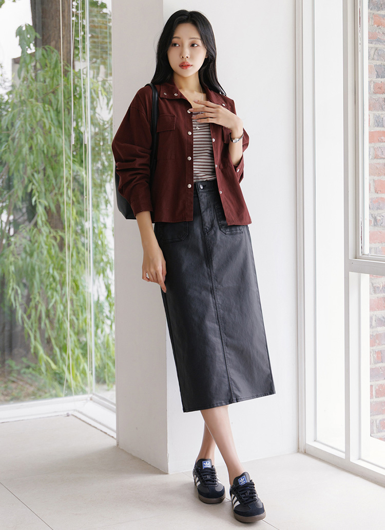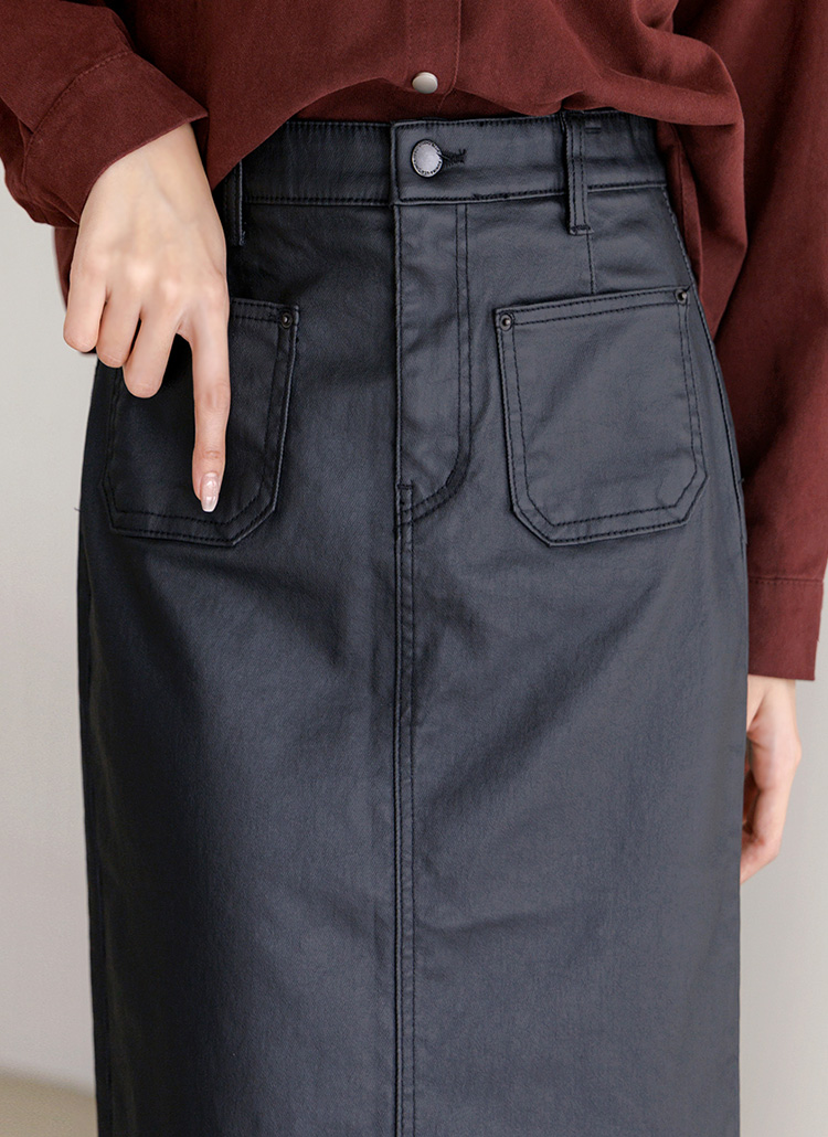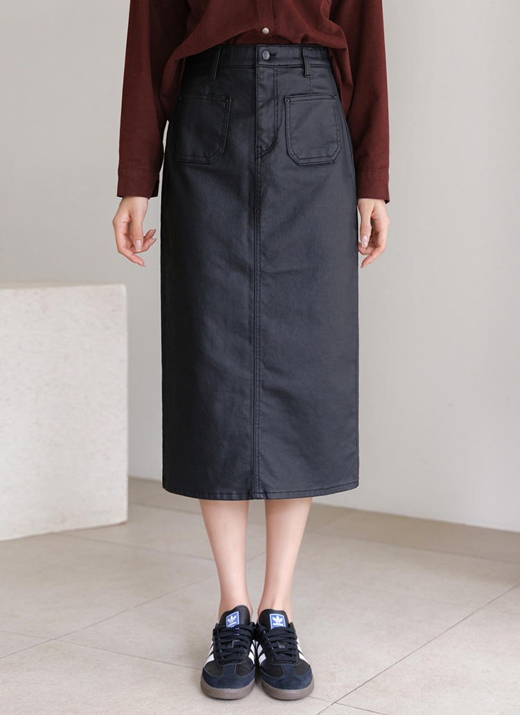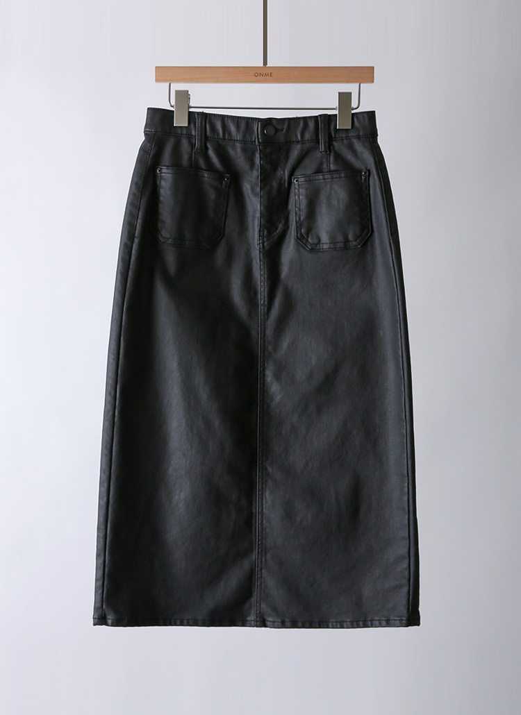 앞포켓 디자인의 H라인 페이크 레더 스커트에요 :)