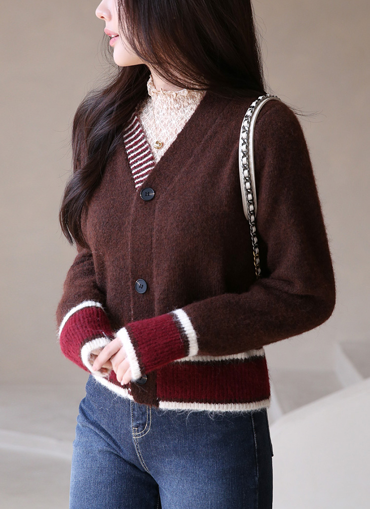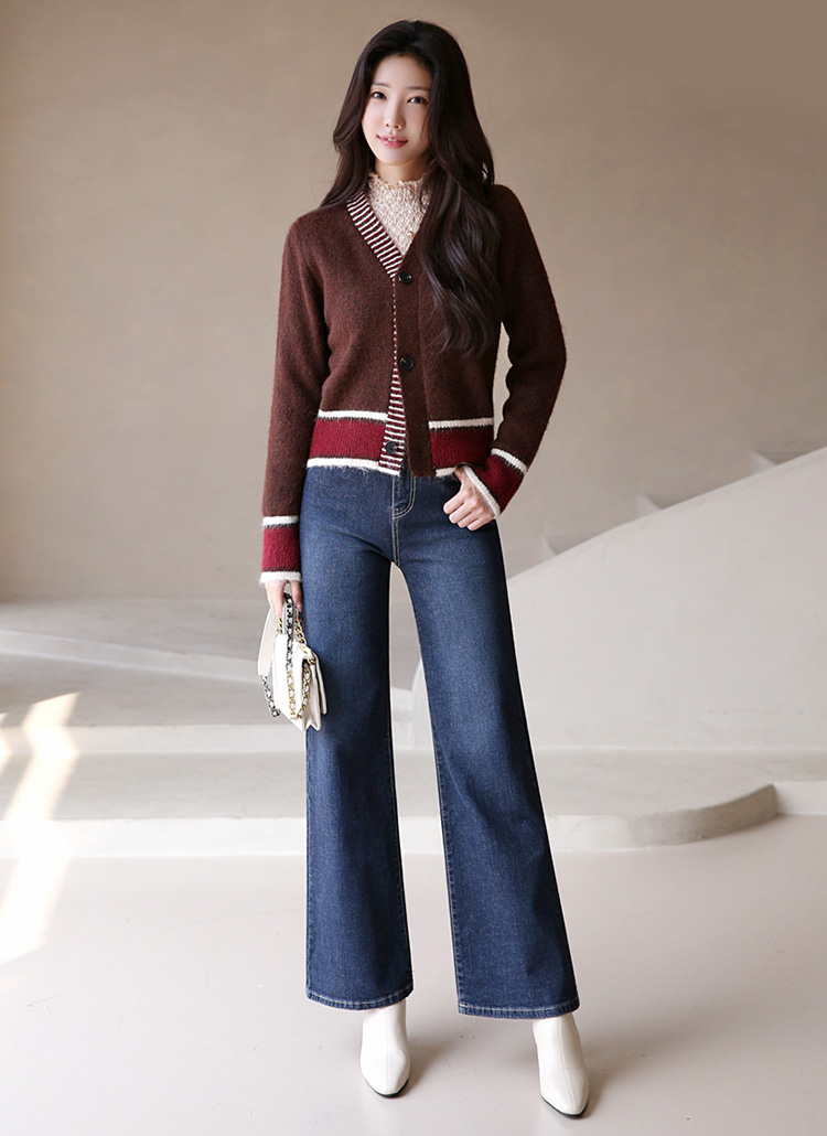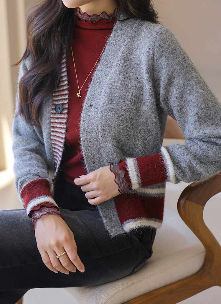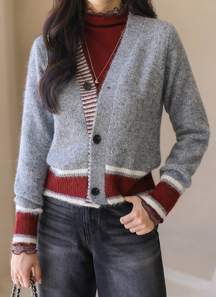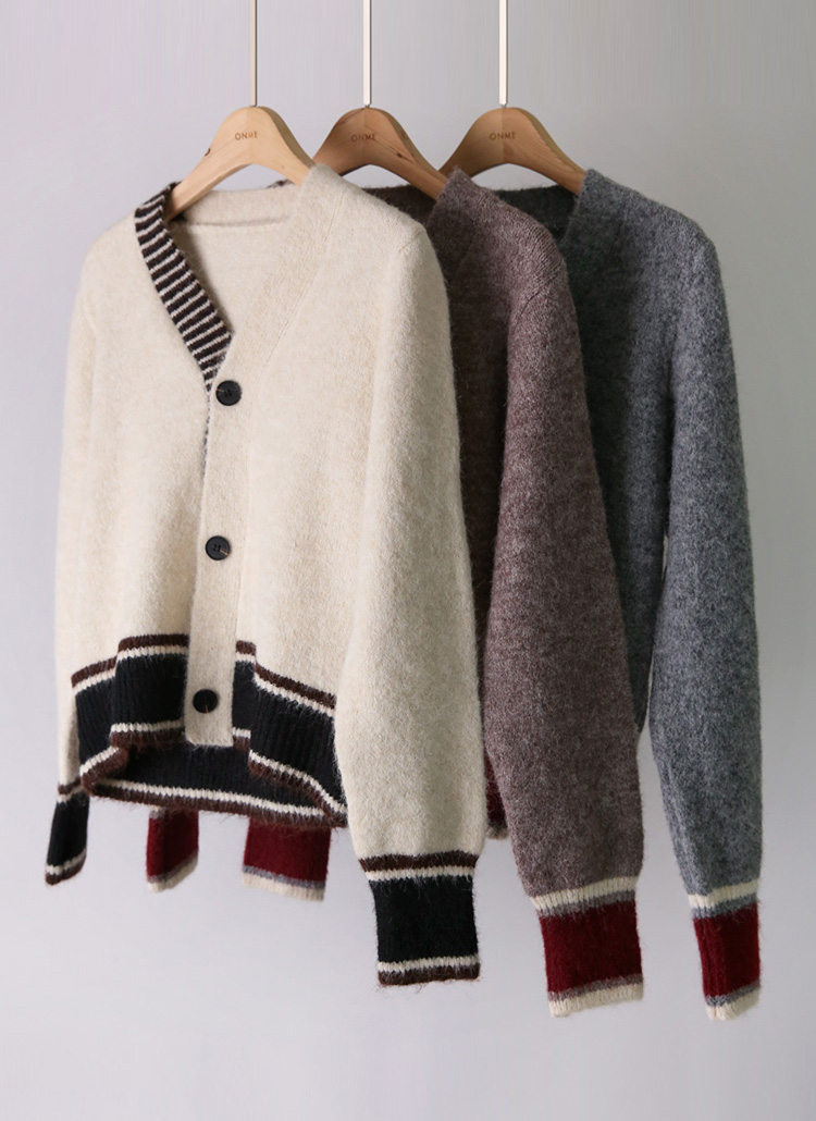 세인프 울 블렌딩 포근포근 헤어리 언발란스 배색 니트 가디건