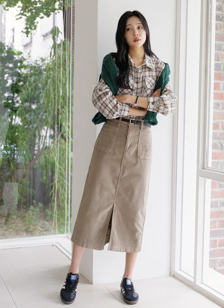 톡톡한 코듀로이 소재의 H라인 스커트에요 :)