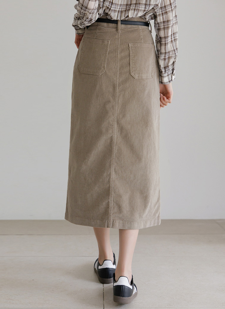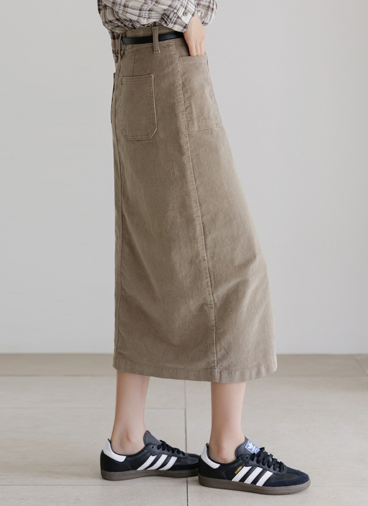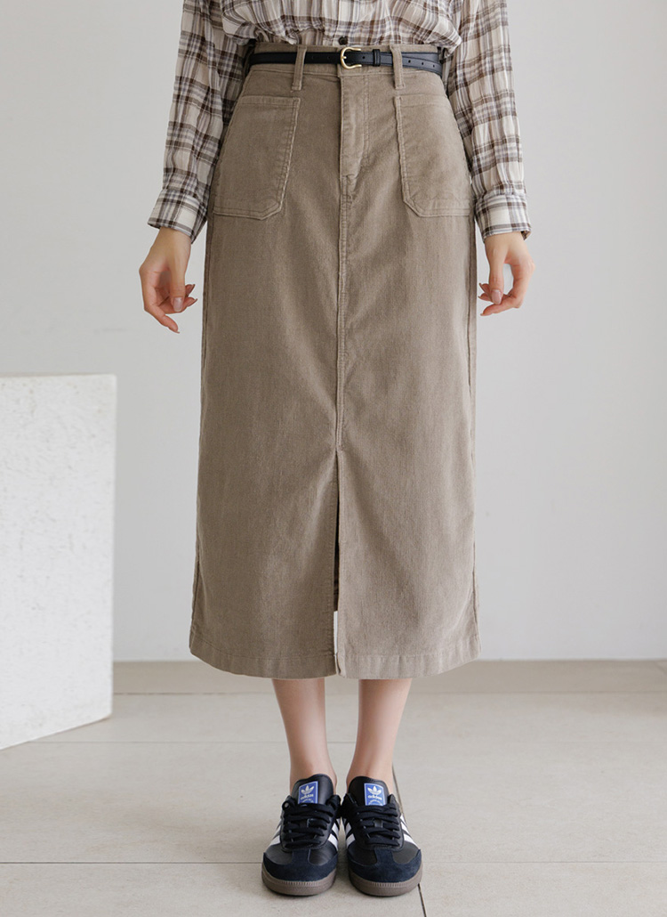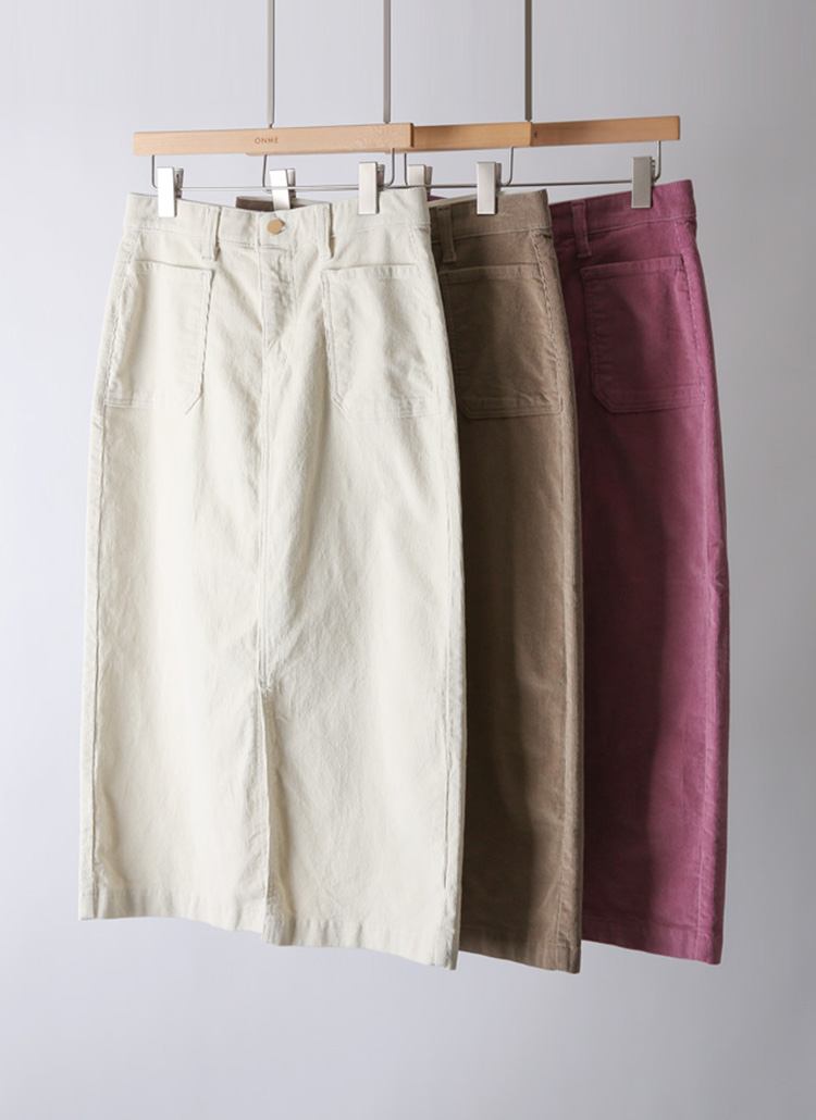 [Theonme] 홀앤드 앞트임 포켓 코듀로이 H라인 스커트