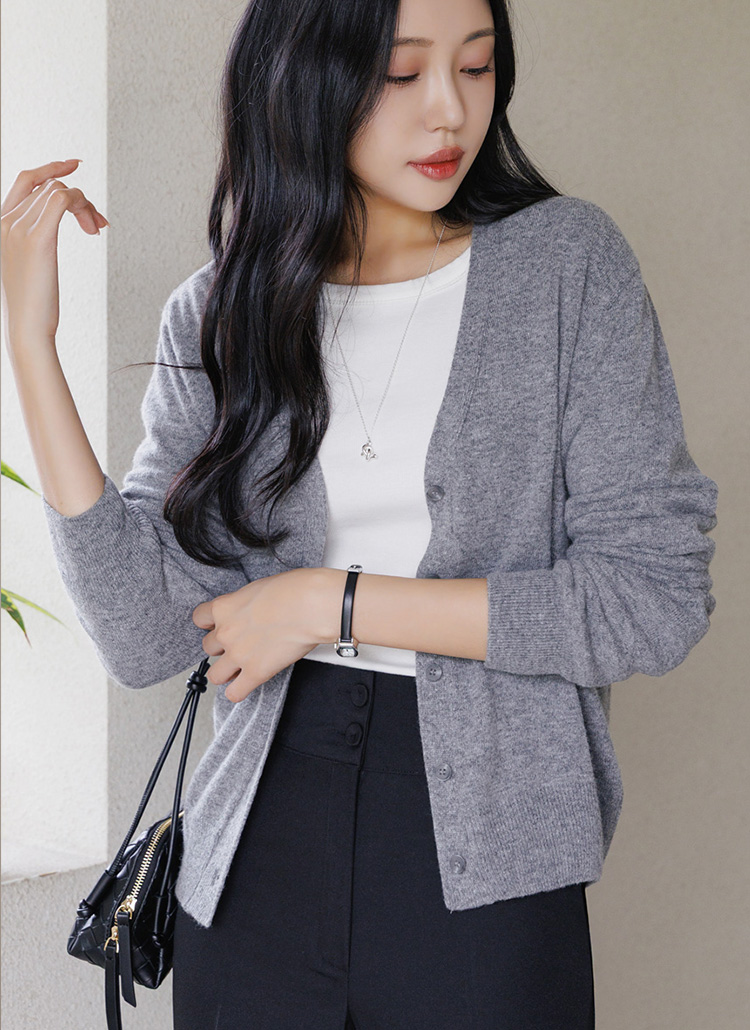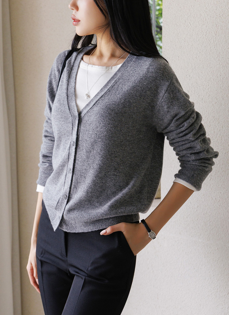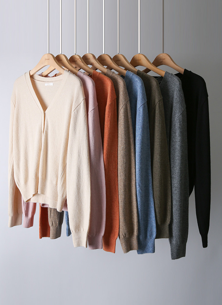 [Theonme] 글로이 파인울 캐시미어 베이직 브이넥 니트 가디건