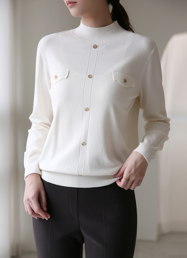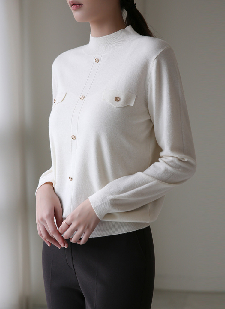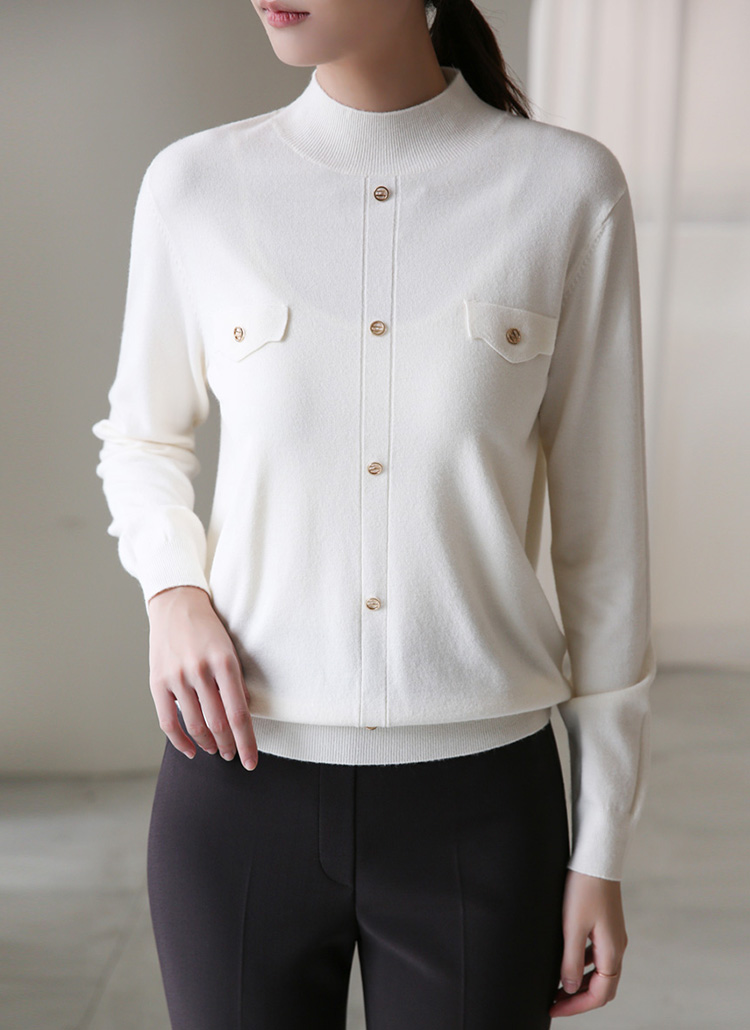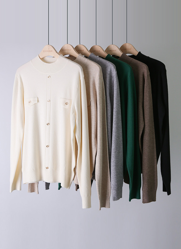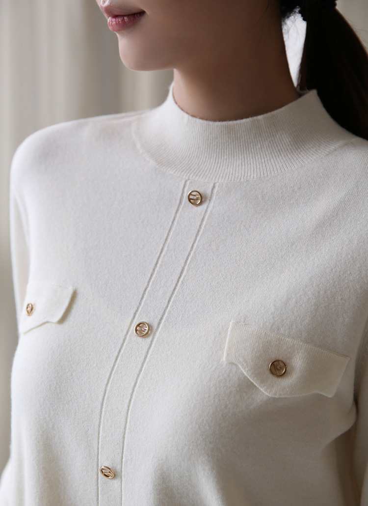 레이슨 골드 버튼 디테일 포근한 따뜻한 반하이넥 니트