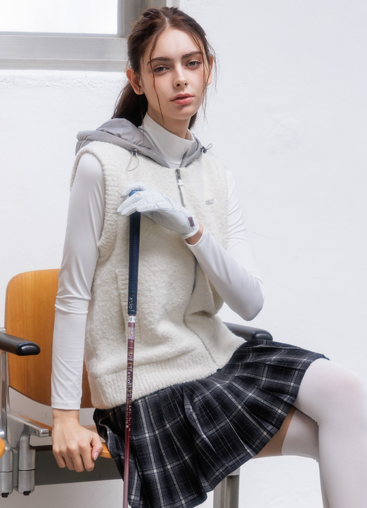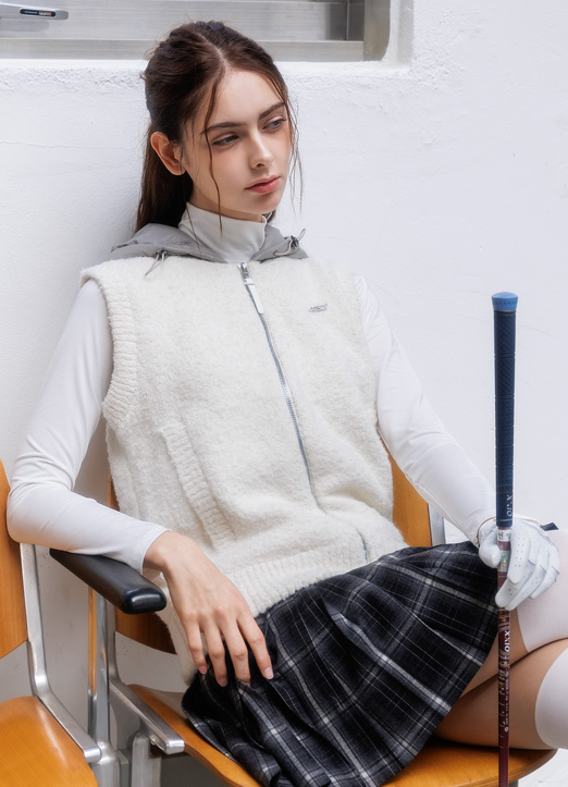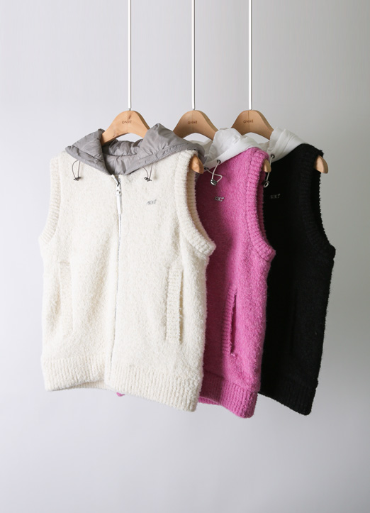 [QoG] 골프 패딩 후드배색 니트 집업 베스트 _3color