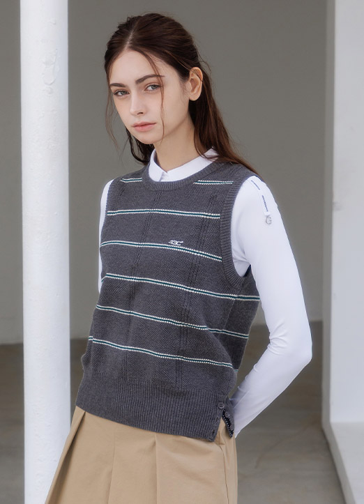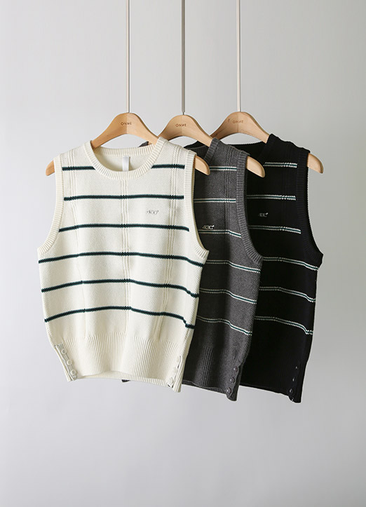 [QoG] 골프 스트라이프 사이드 버튼 니트 베스트_3color