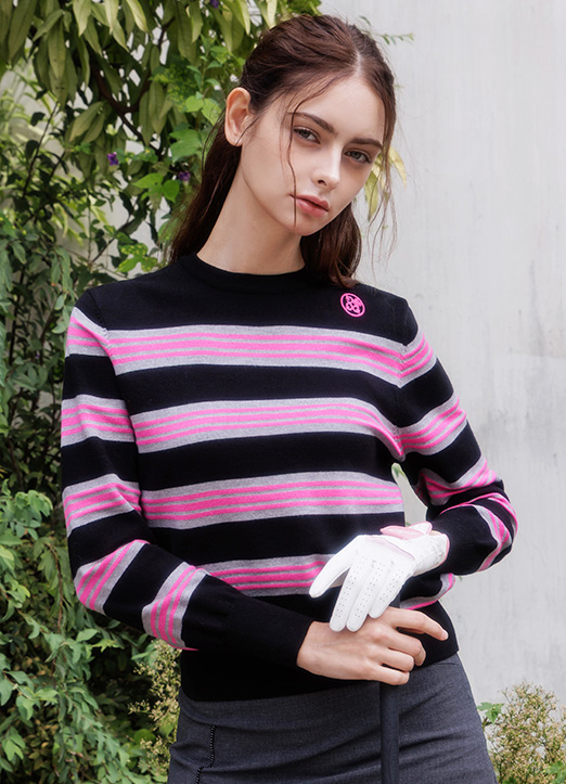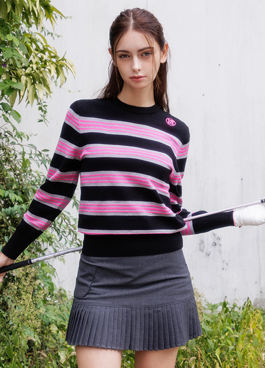 [QoG] 골프 스트라이프 포인트 라운드 니트