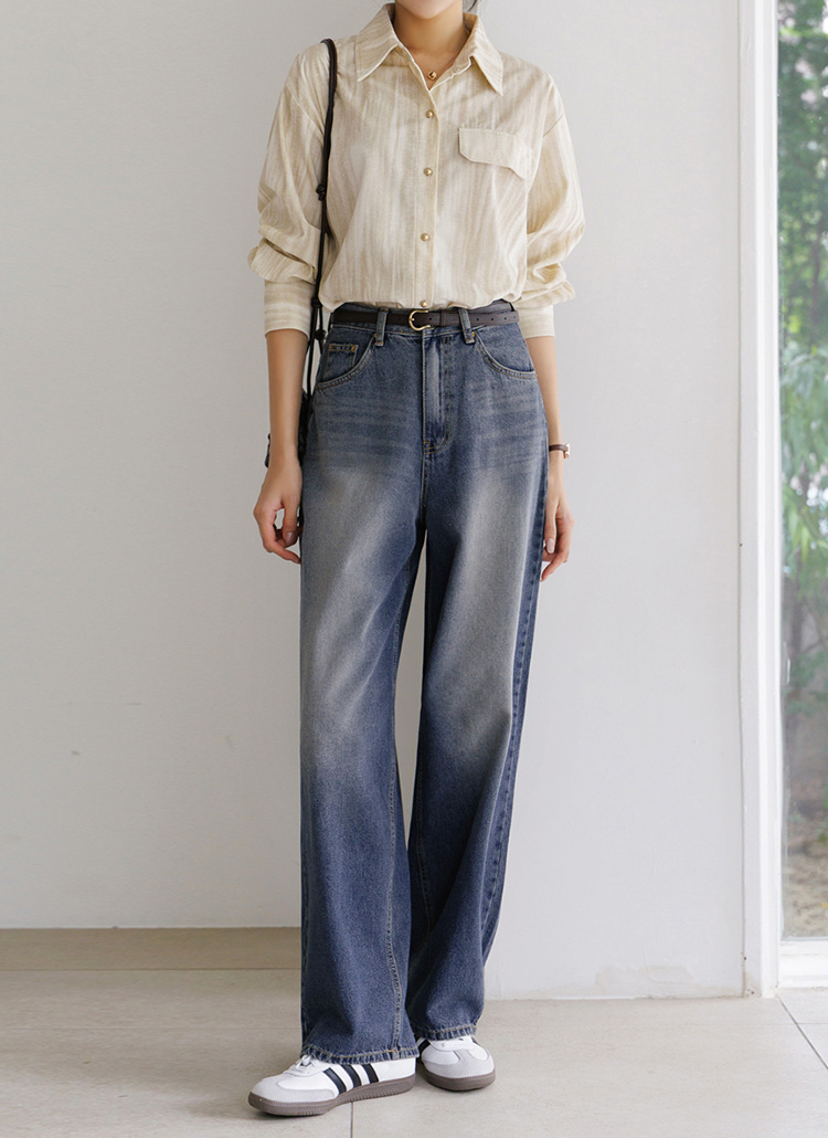 [Theonme] 볼레인 그라데이션 골드버튼 코듀로이 셔츠
