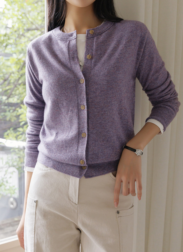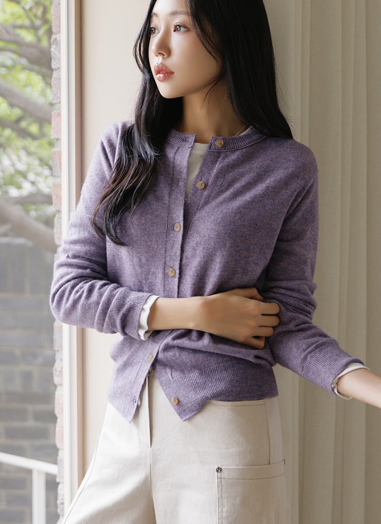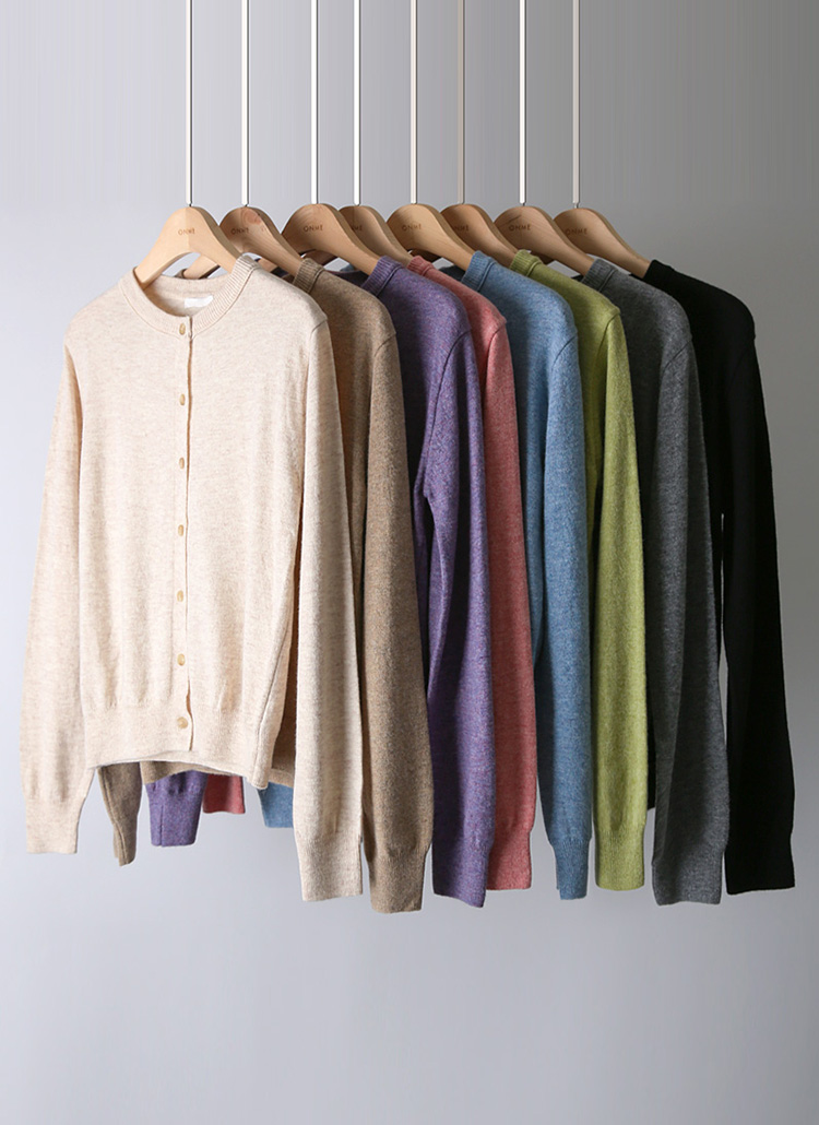 [Theonme] 벨리오 파인울 캐시미어 베이직 라운드넥 니트 가디건
