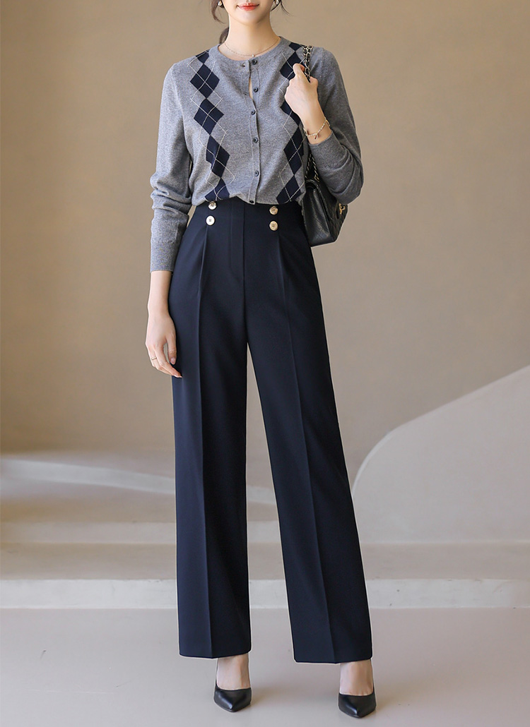 세련된 더블 골드 버튼과 원턱 디테일로