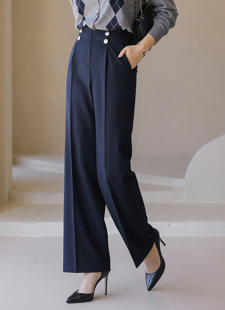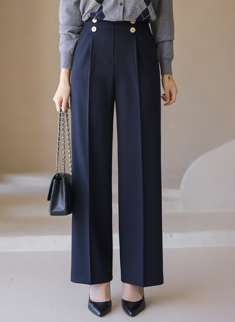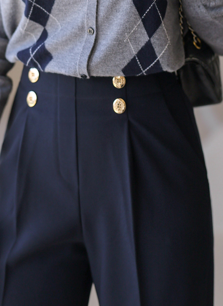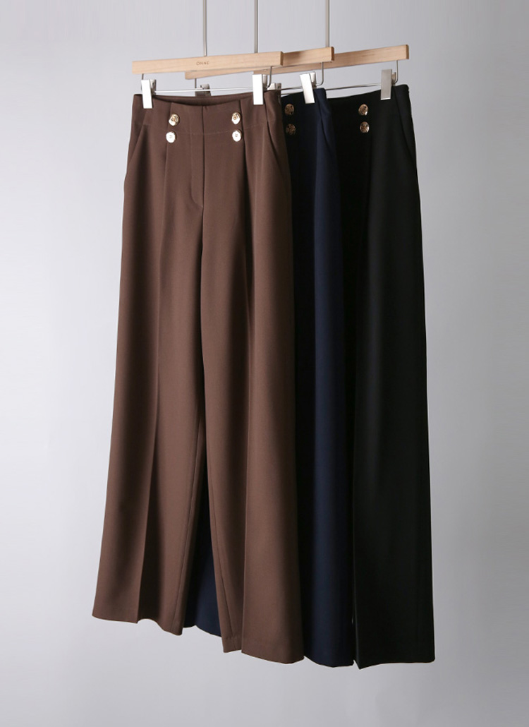 세이린 더블 골드 버튼 원턱 세미 와이드 슬랙스 팬츠