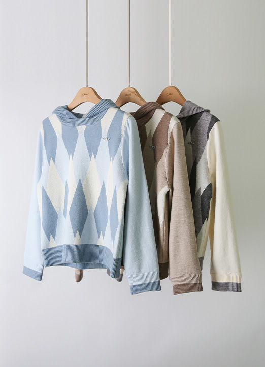 [QoG] 골프 아가일 패턴 후드 니트_3color