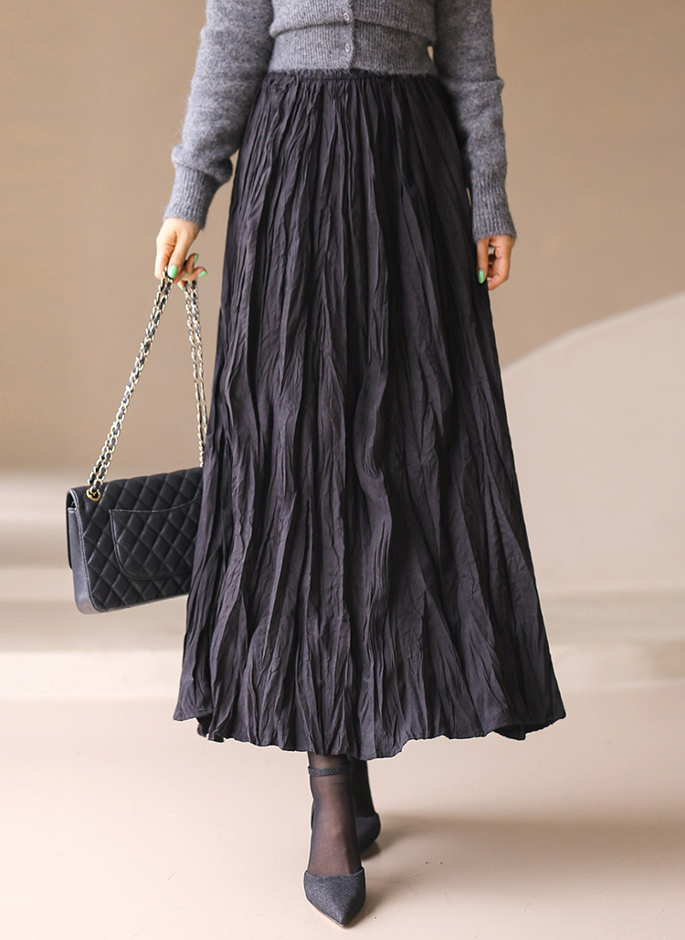 베이드 허리밴딩 벨트SET 링클 텍스쳐 A라인 롱 플레어 스커트