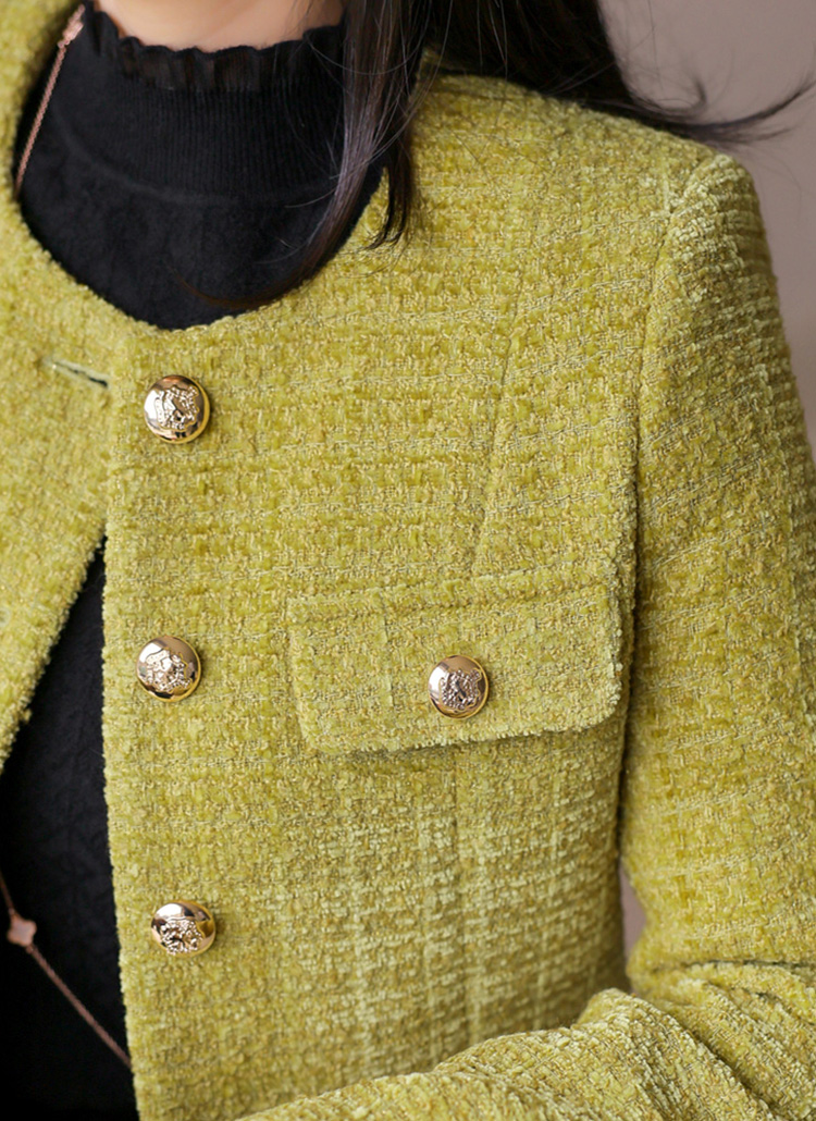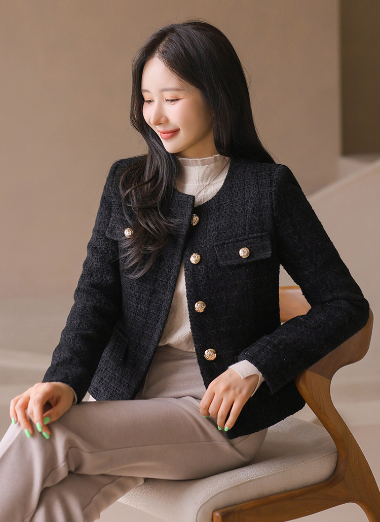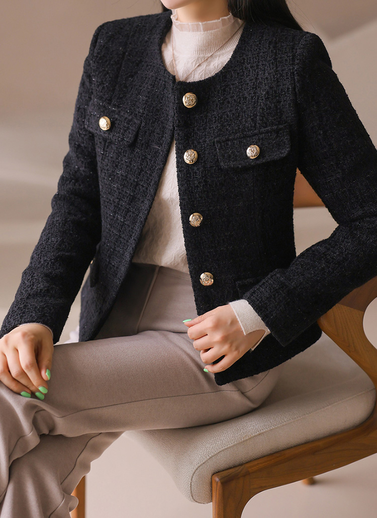 [LouisAngel](색상추가)리즈헨 소프트 울 블렌딩 골드 펄 트위드 노카라 자켓(BL&OG)
