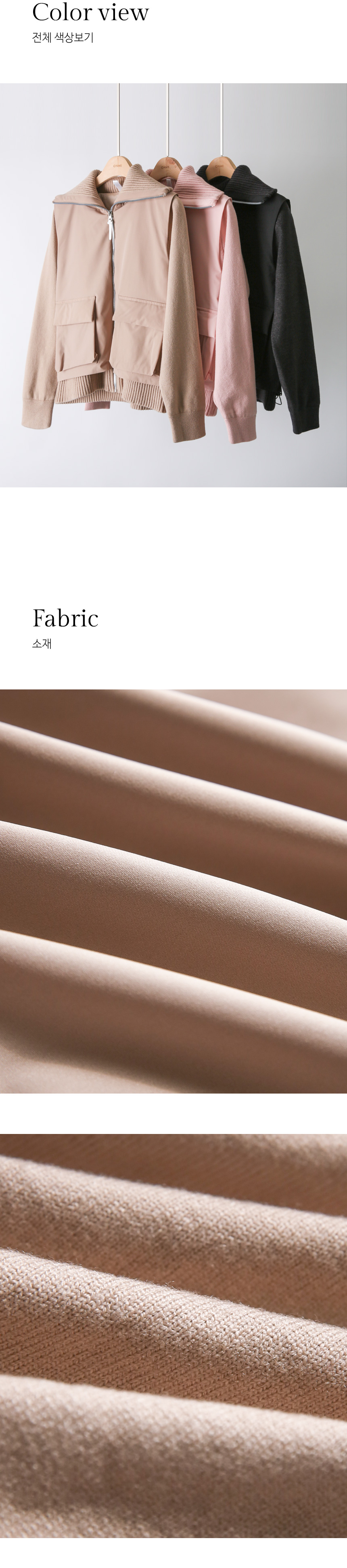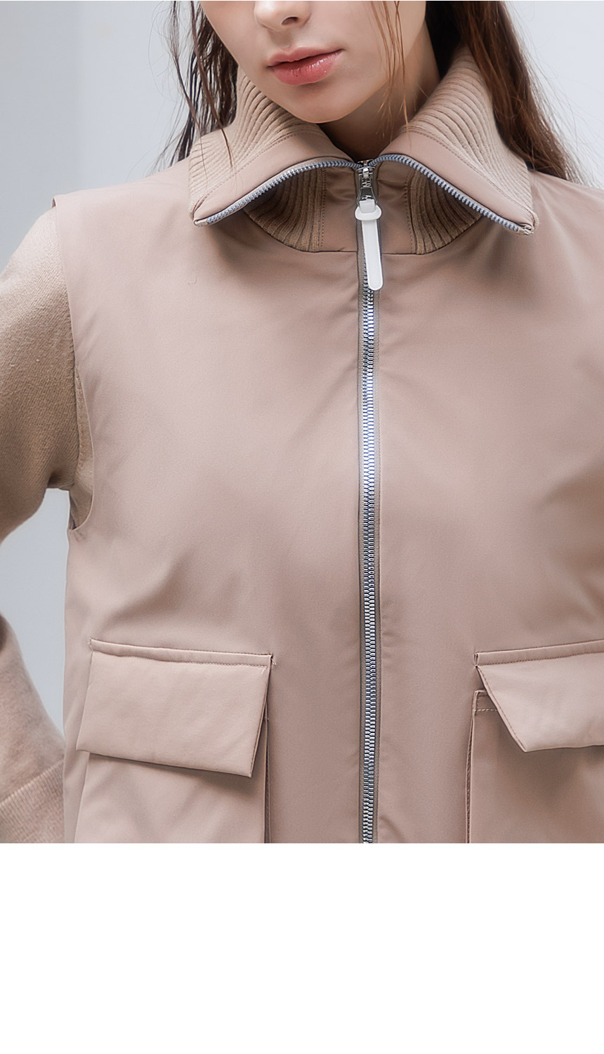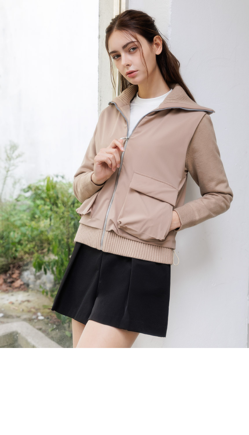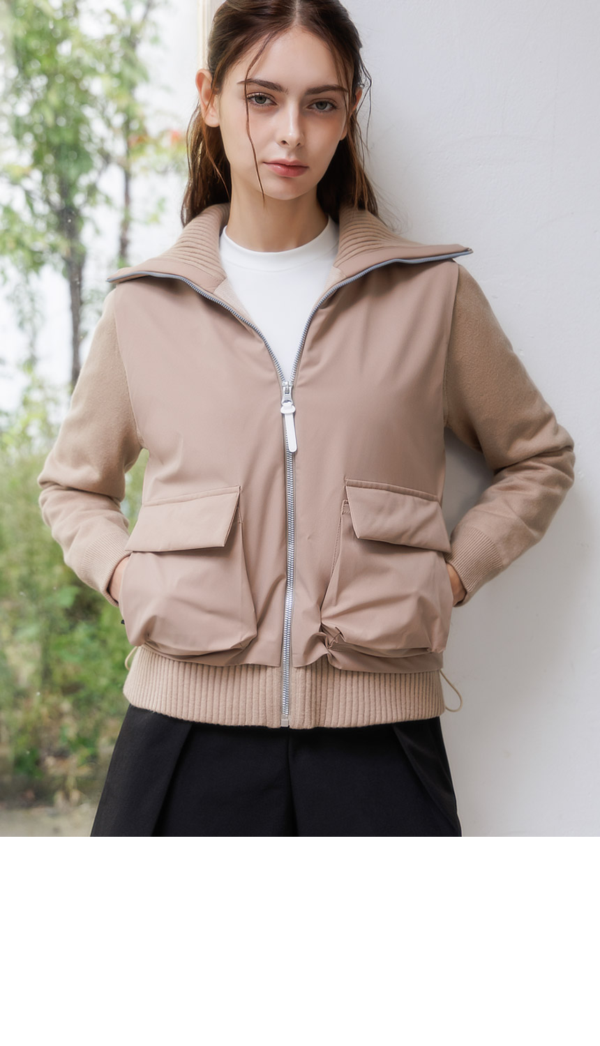 하이넥 시보리와 아웃포켓 디테일이 포인트로,