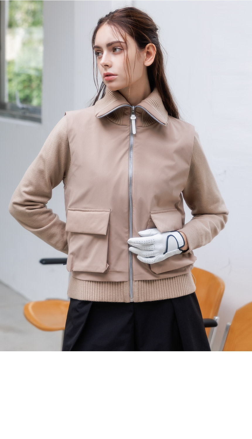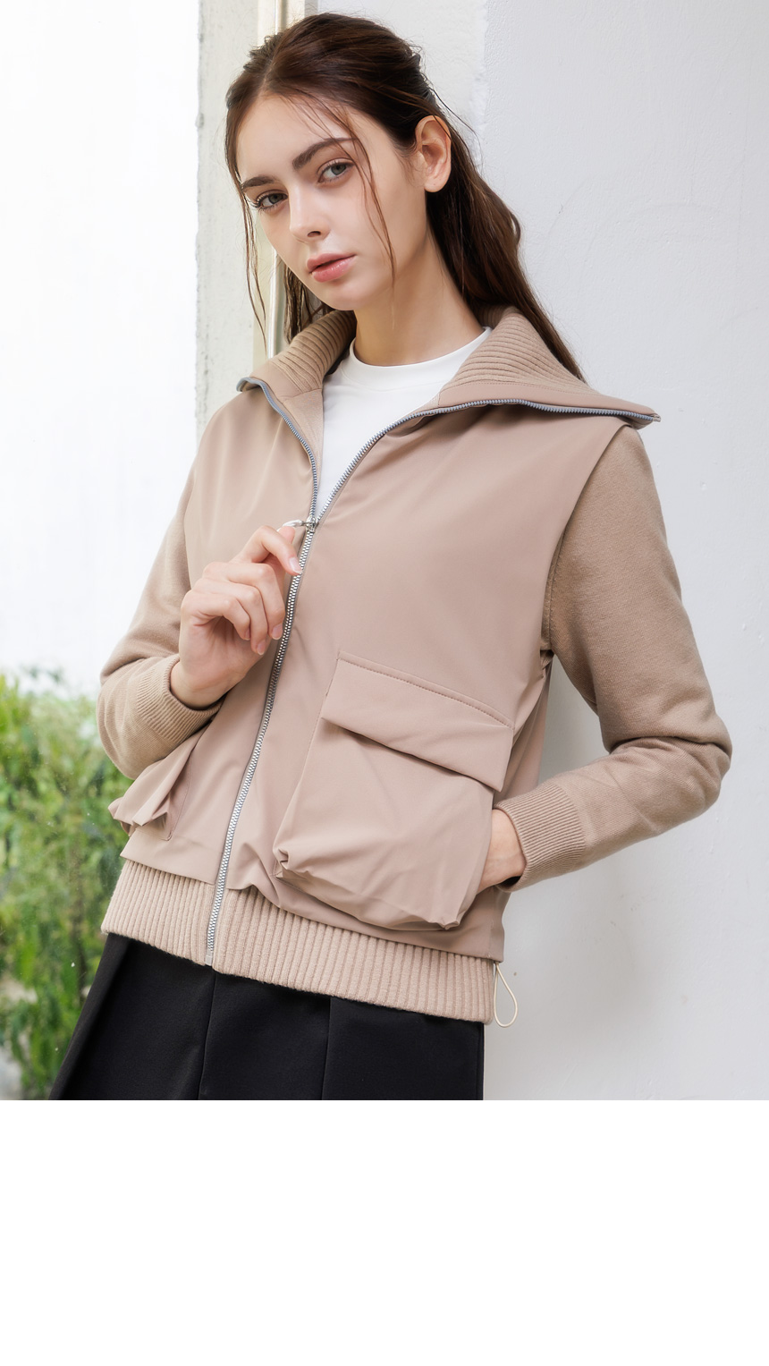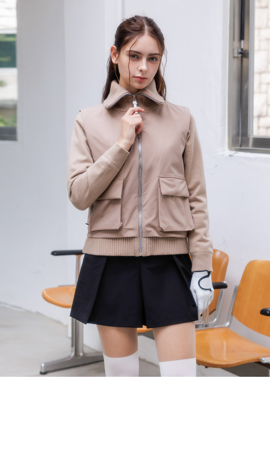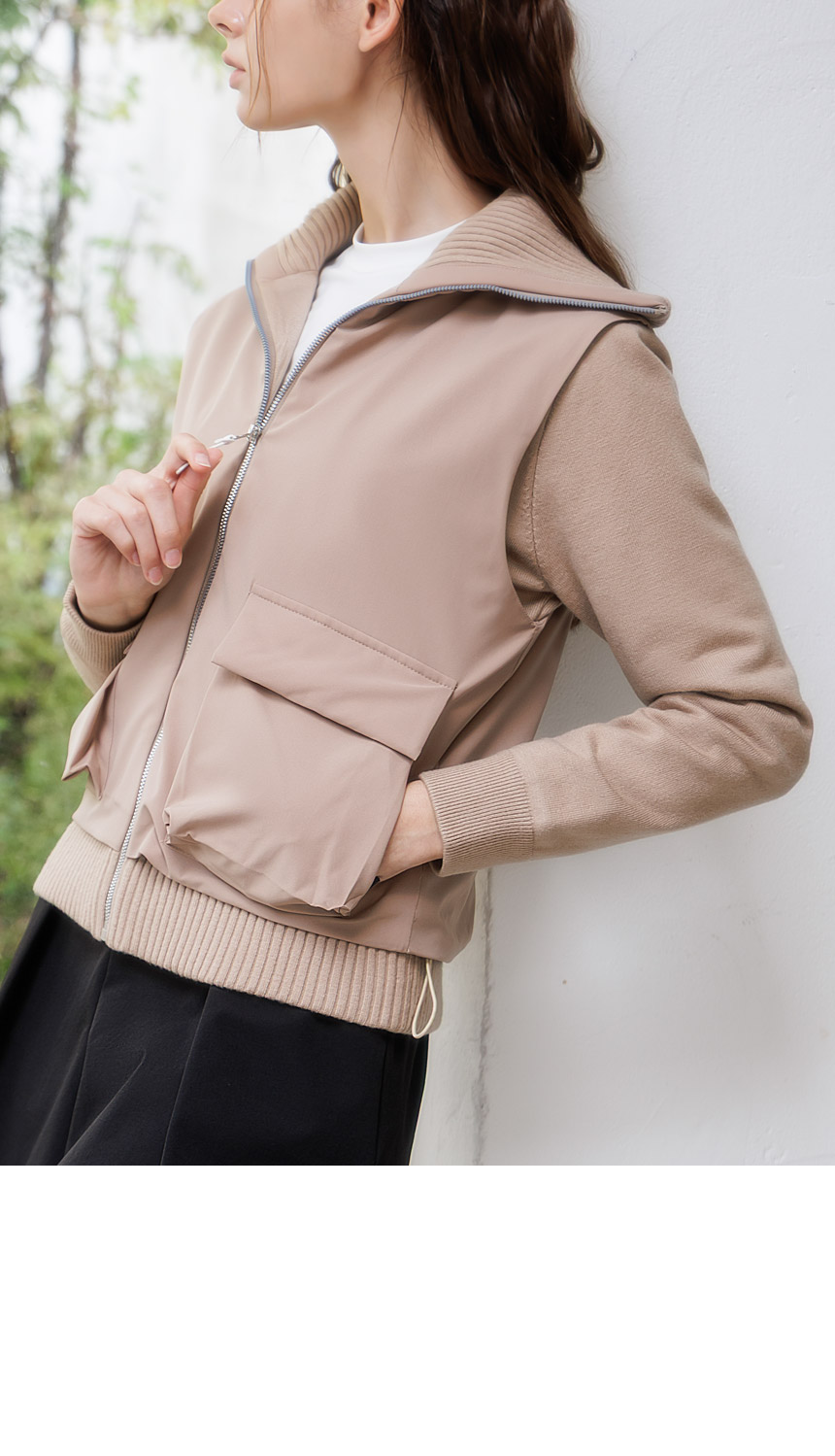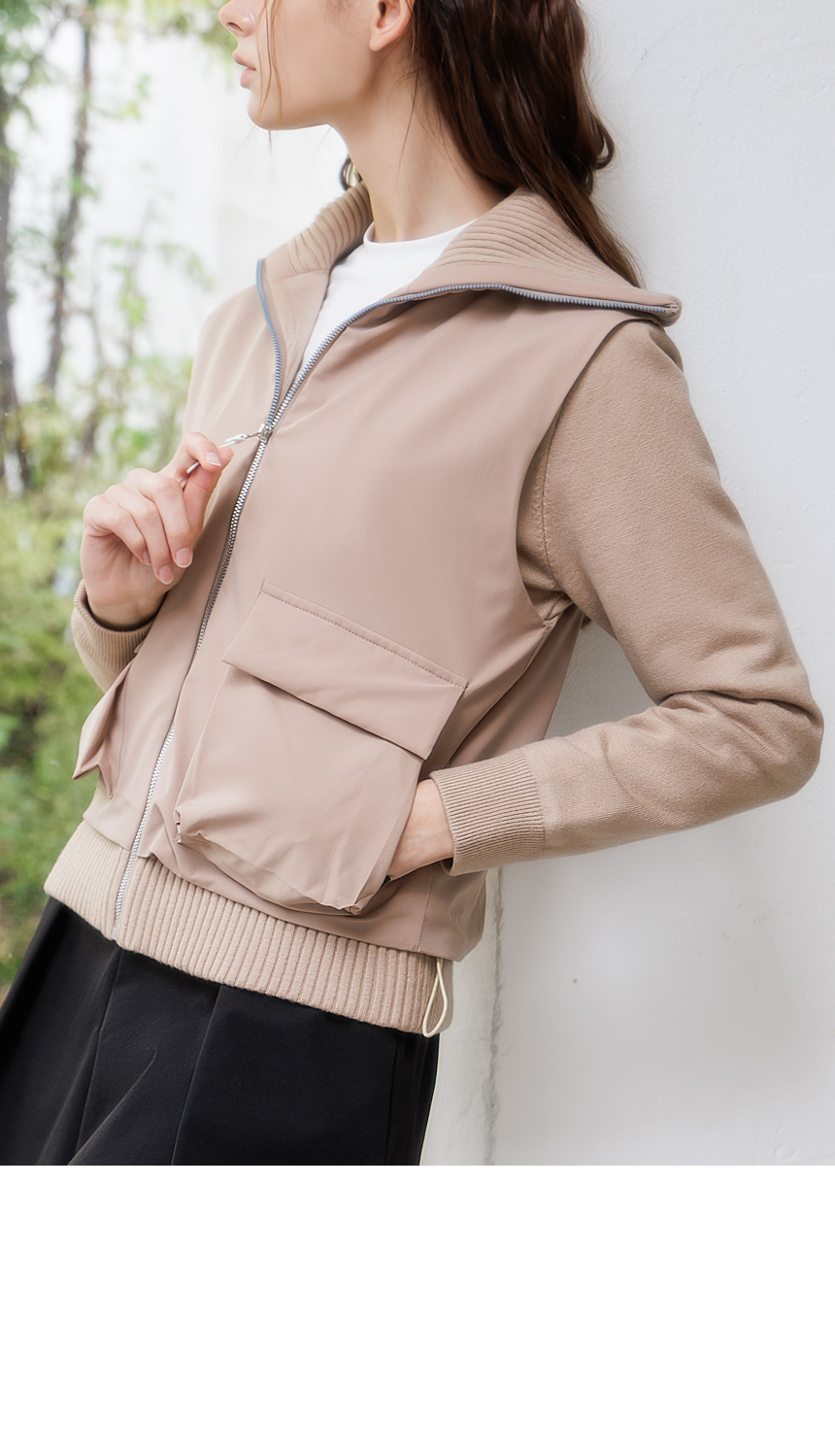 하이넥 시보리와 아웃포켓 디테일이 포인트로,
