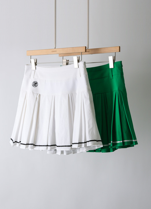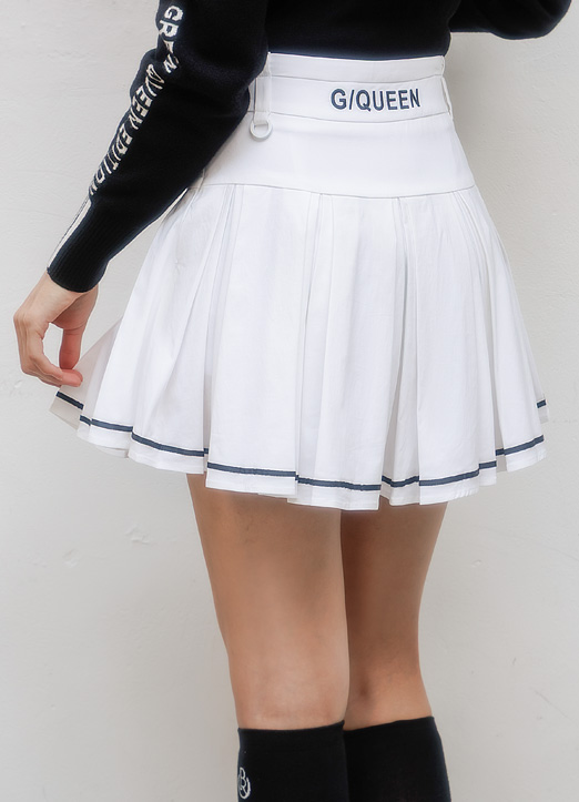 [QoG] 골프 로고자수 라인 플리츠 미니 스커트