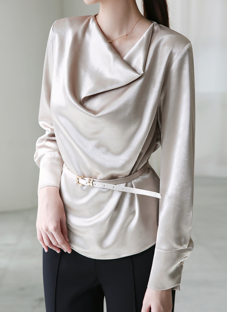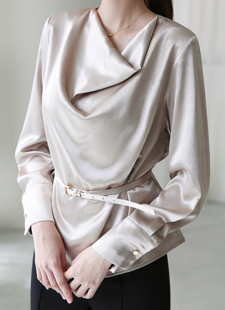 리브스 우아한 드레이프 실루엣 벨트SET 글로시 새틴 미드 블라우스