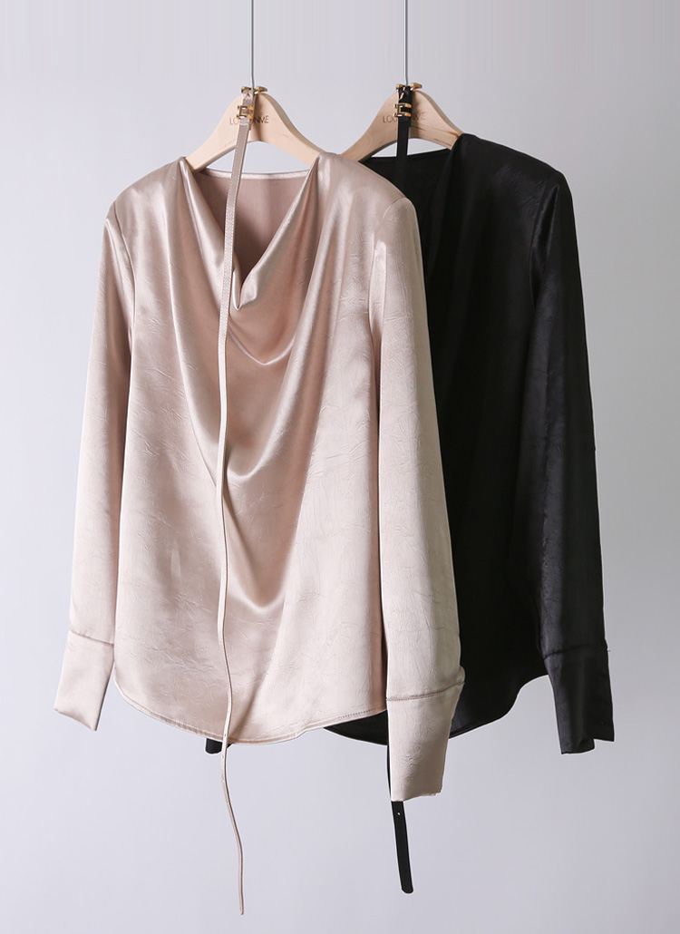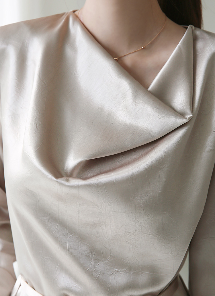 광택감이 도는 새틴 소재로 드레시하고 멋스러운 무드를 연출하는 블라우스에요 :)