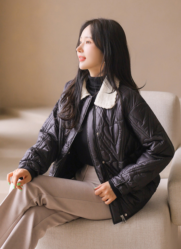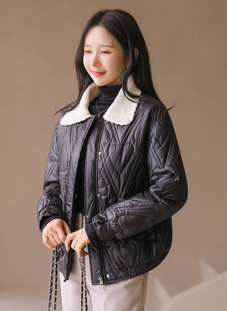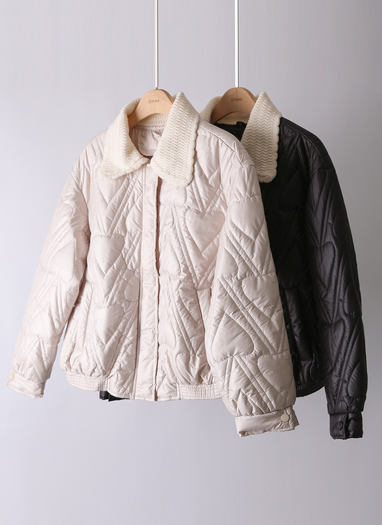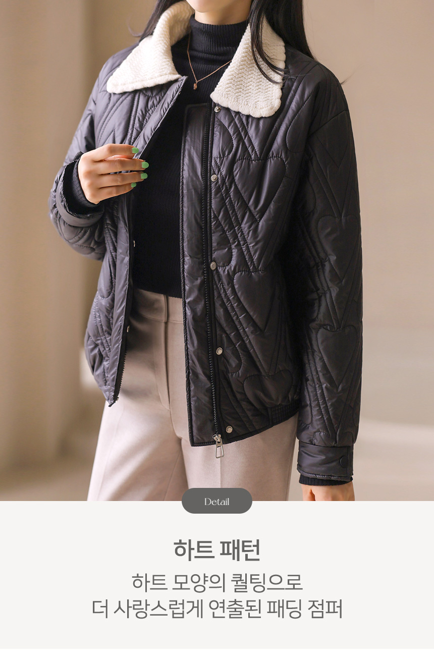 하트 모양의 퀄팅이 사랑스럽게 돋보이는 패딩 점퍼에요 :)