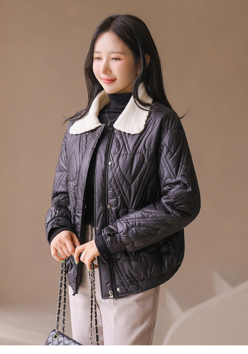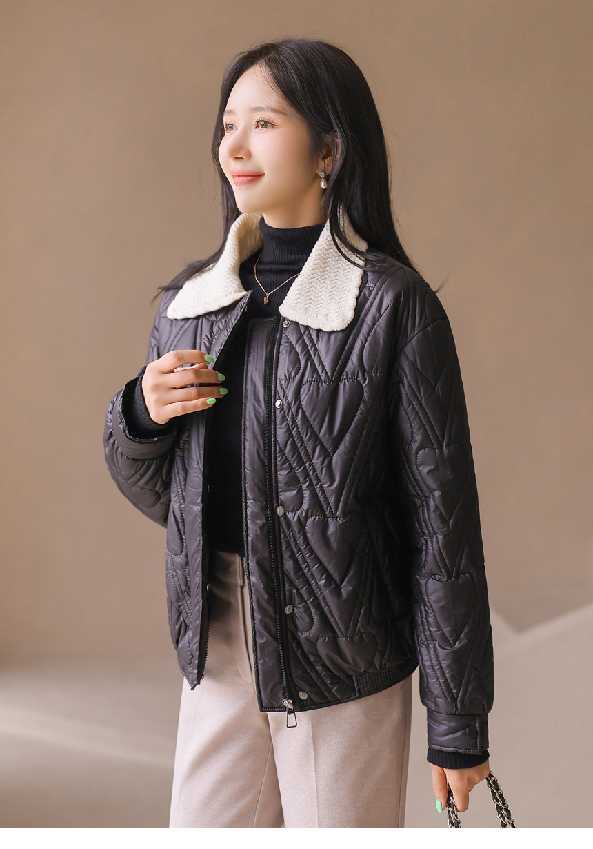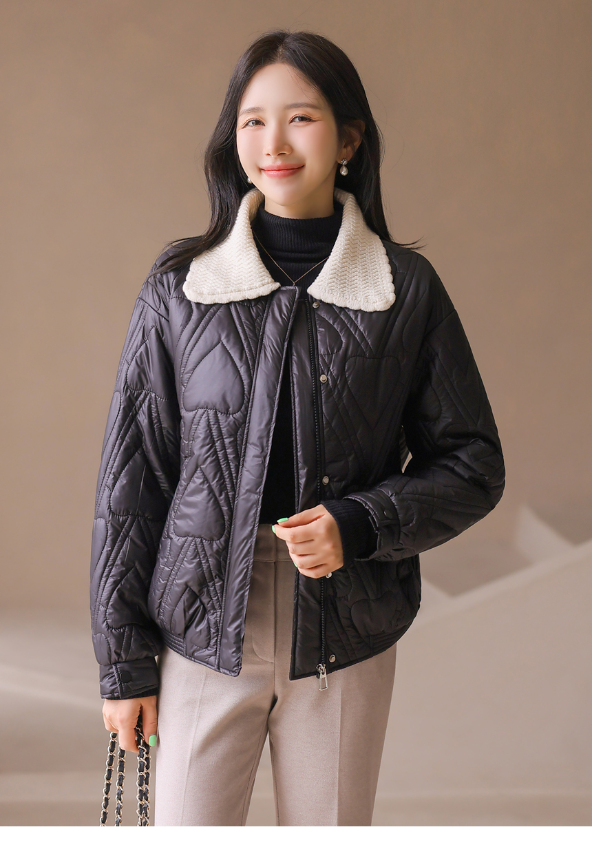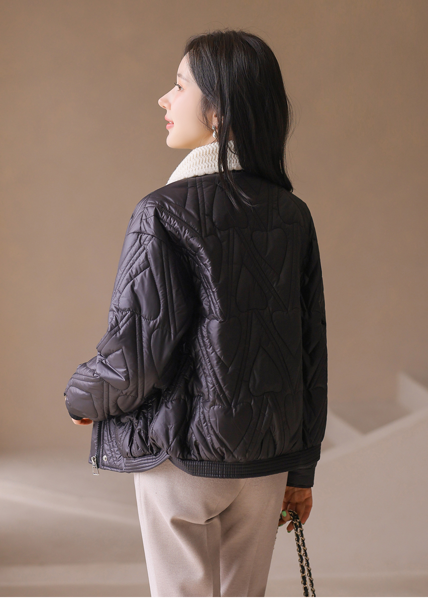 하트 모양의 퀄팅이 사랑스럽게 돋보이는 패딩 점퍼에요 :)