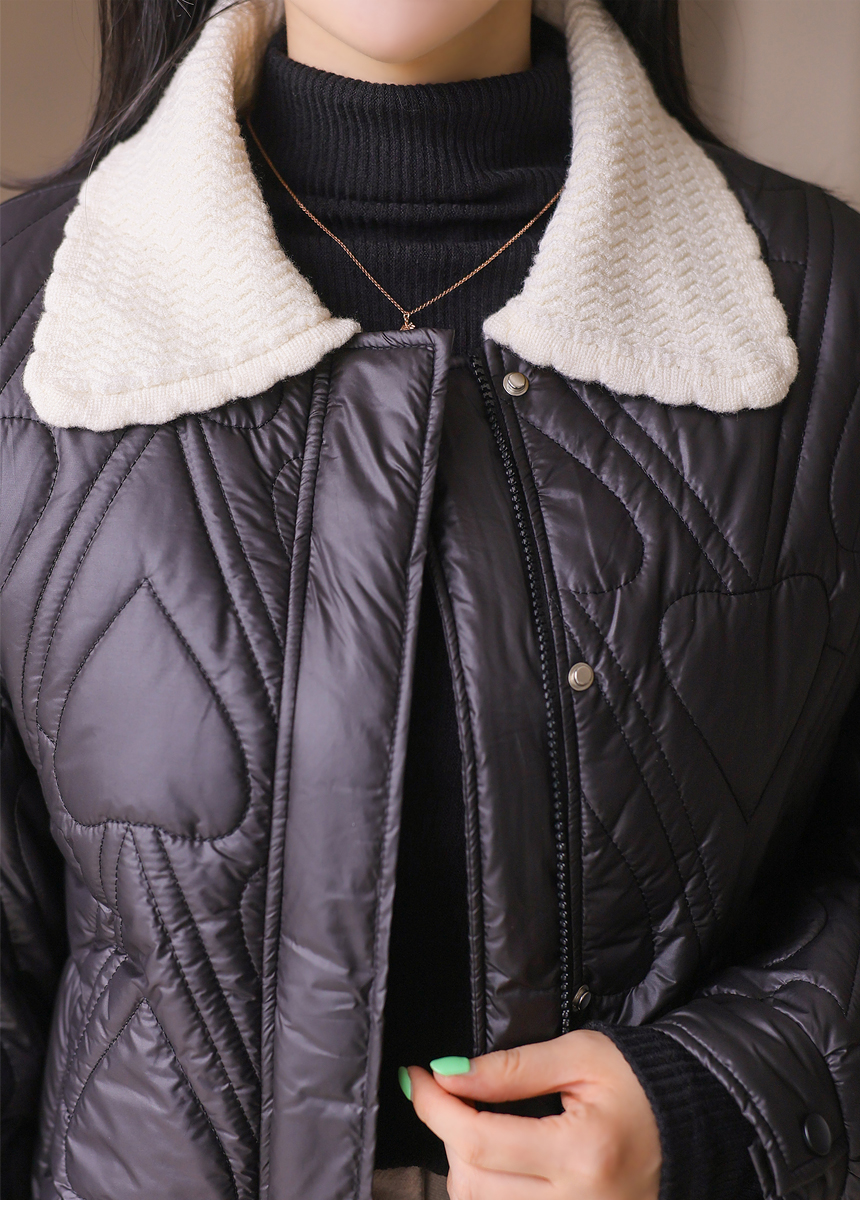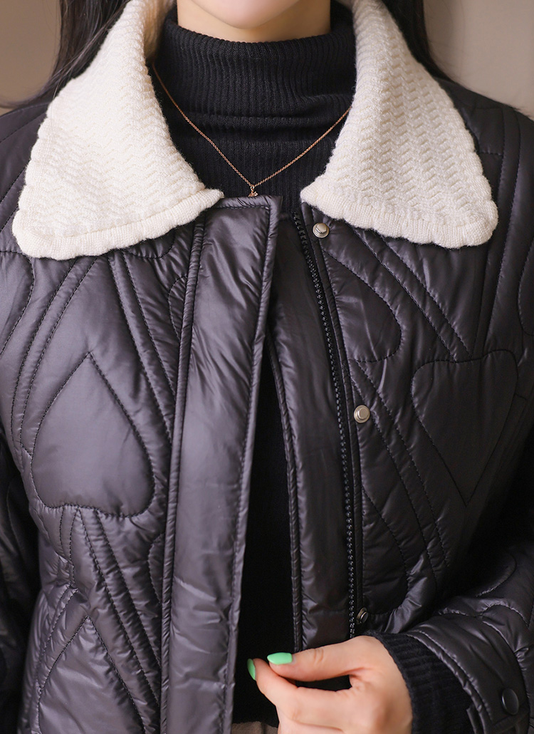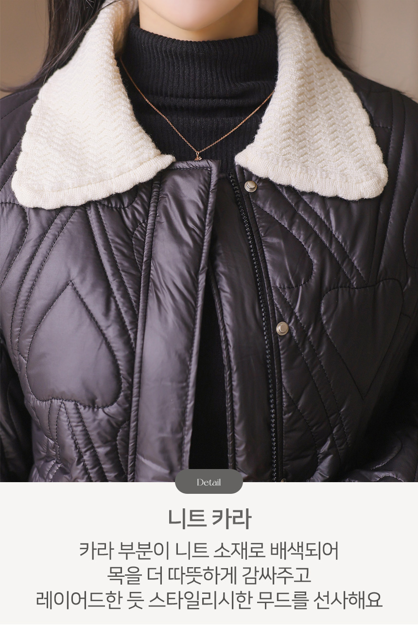 쥬디시 니트 카라 배색 하트 퀄팅 미드 웰론 패딩 점퍼