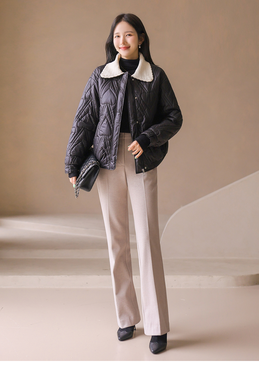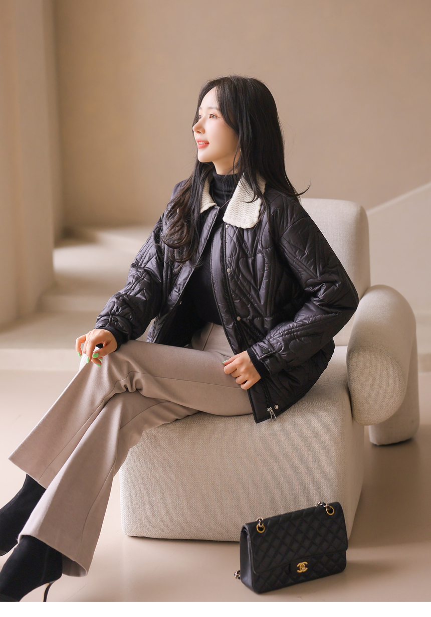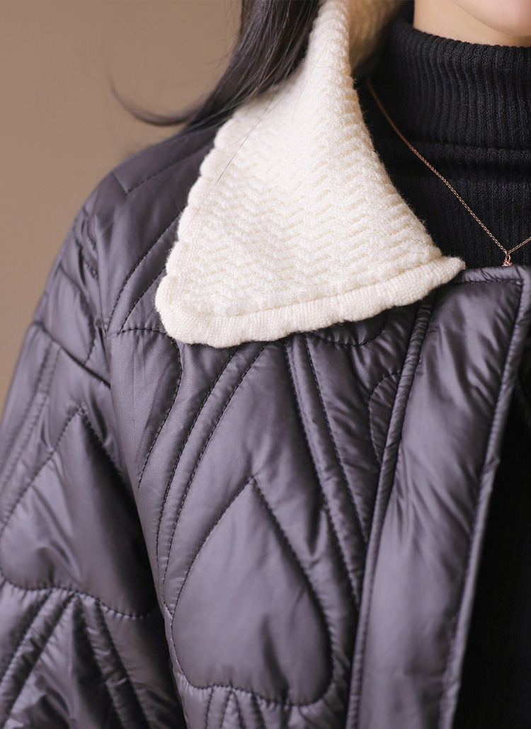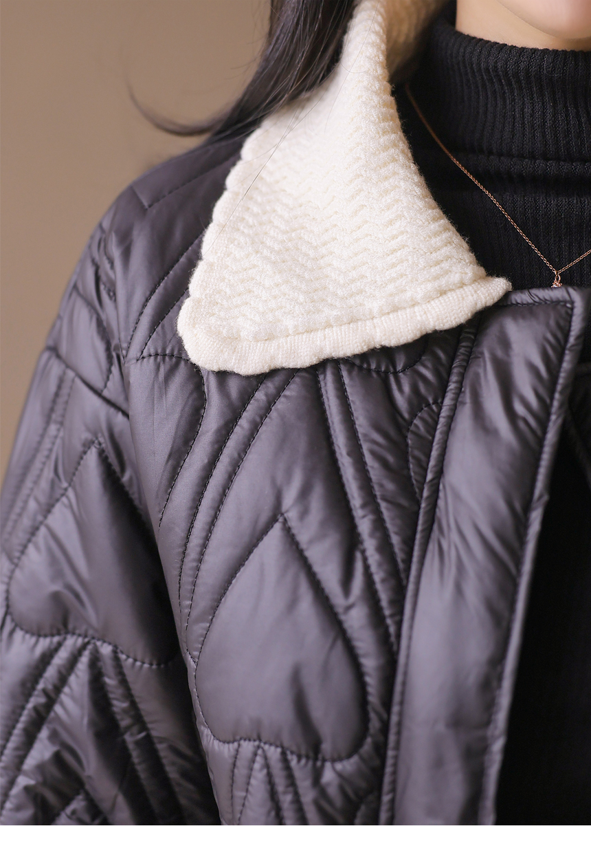 쥬디시 니트 카라 배색 하트 퀄팅 미드 웰론 패딩 점퍼
