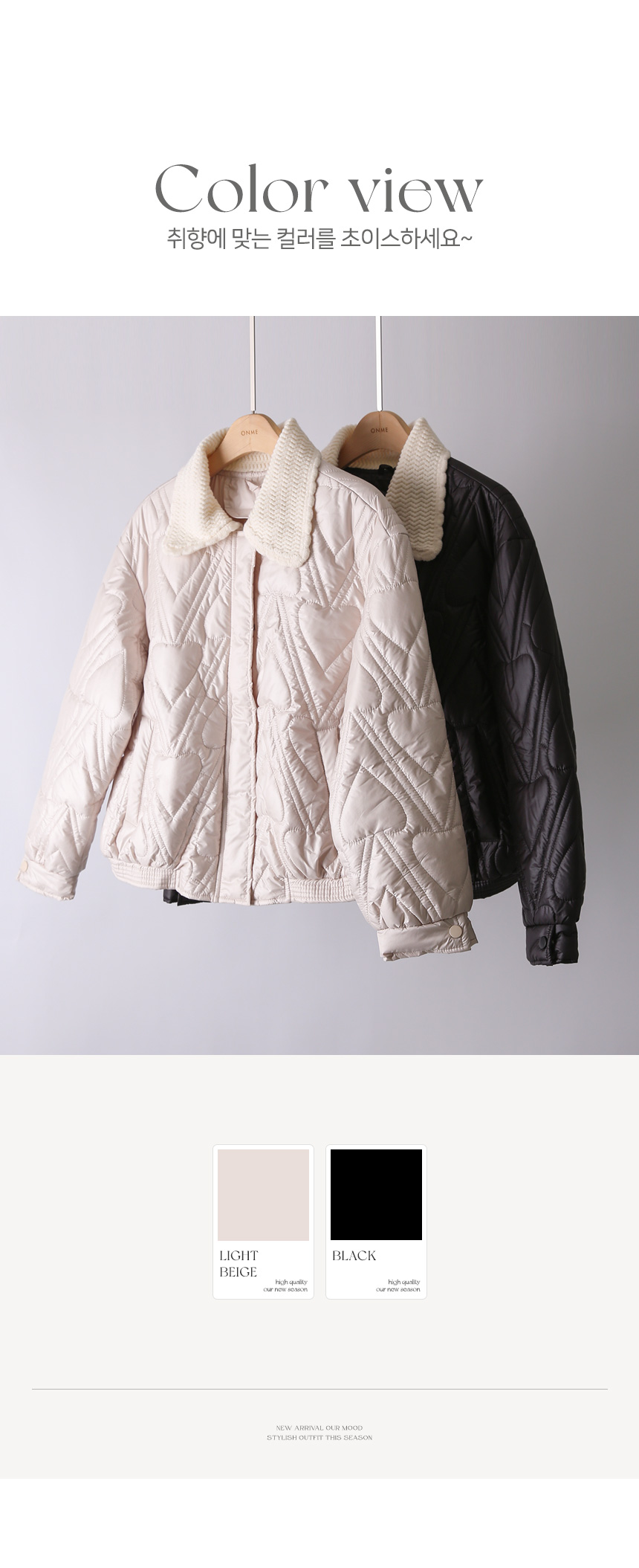 니트 카라 배색으로 목 부분까지 따뜻하게 감싸주어 보온성 Up!
