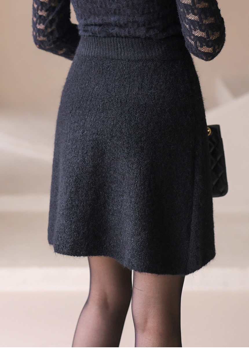 심플한 니트 미니 스커트는 어떤 상의와도 잘 어울려
