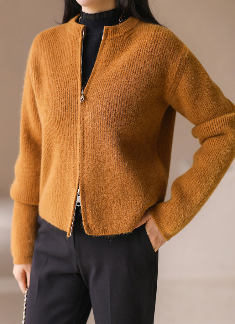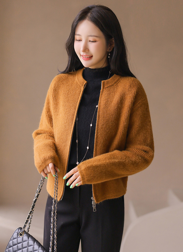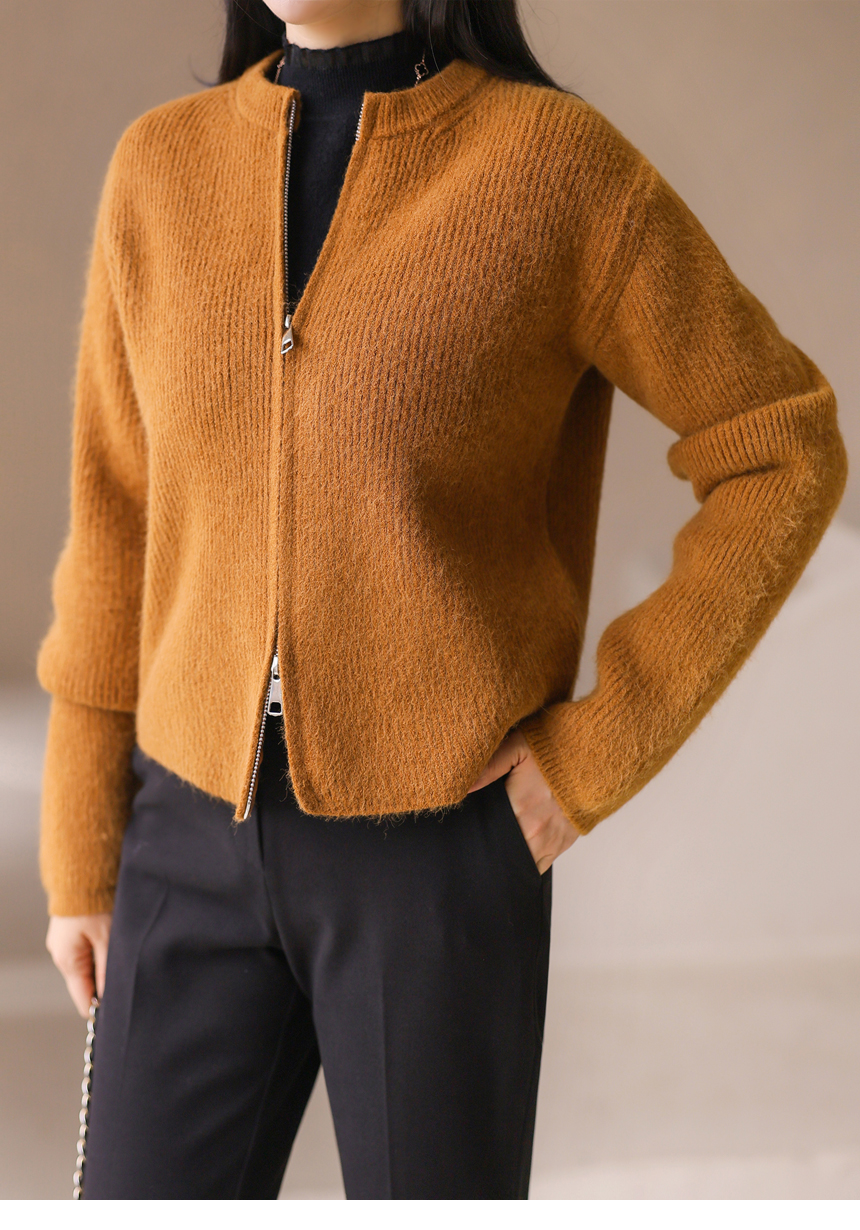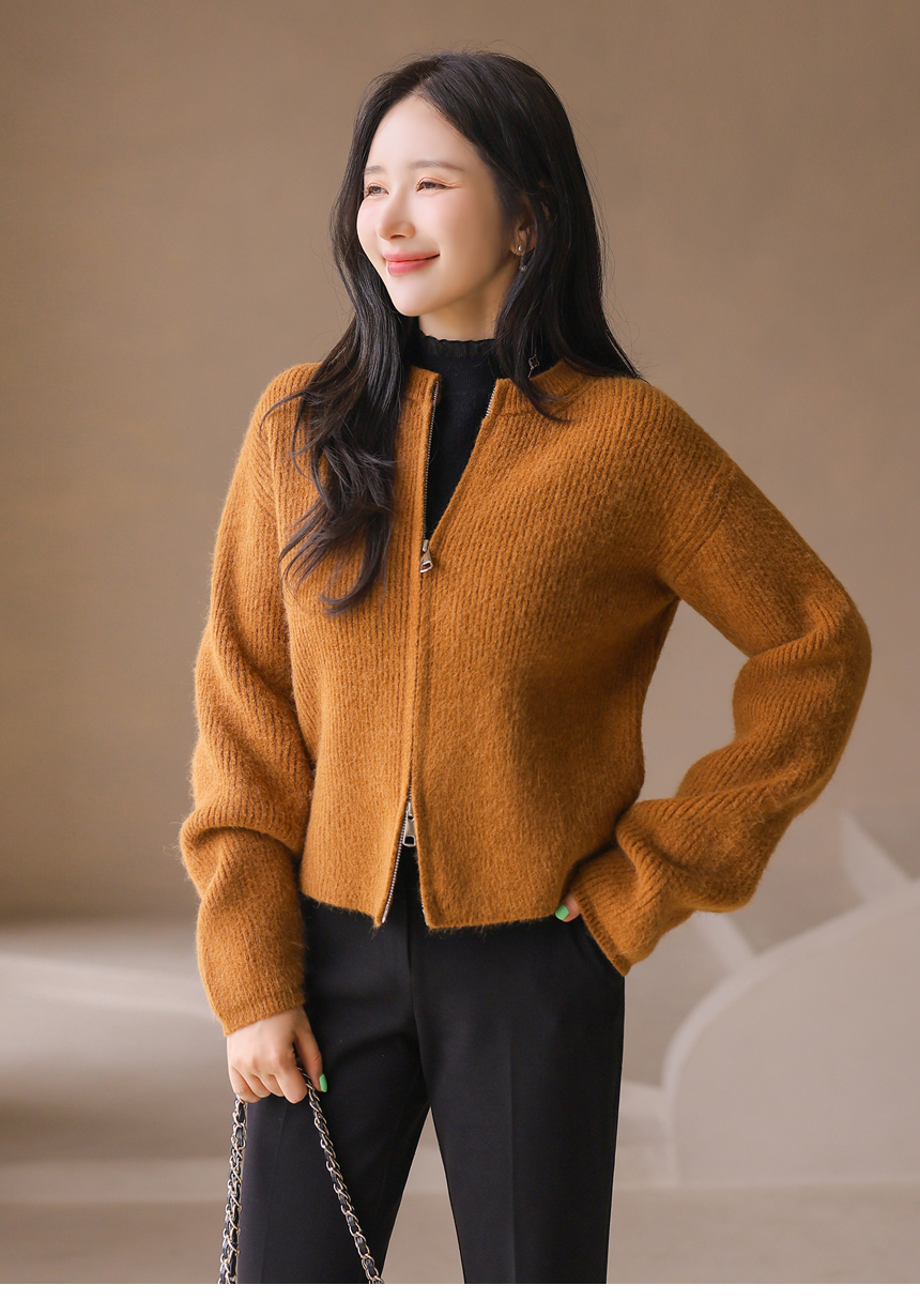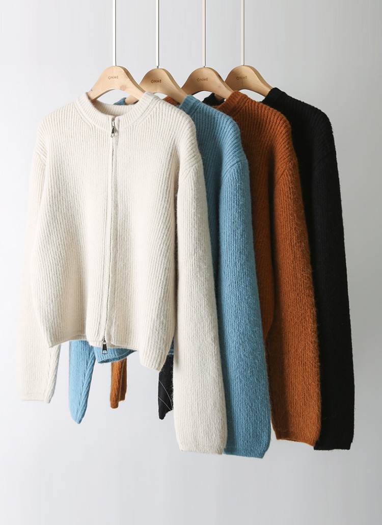 라라블 투웨이 지퍼 포슬포슬 니트 집업 가디건