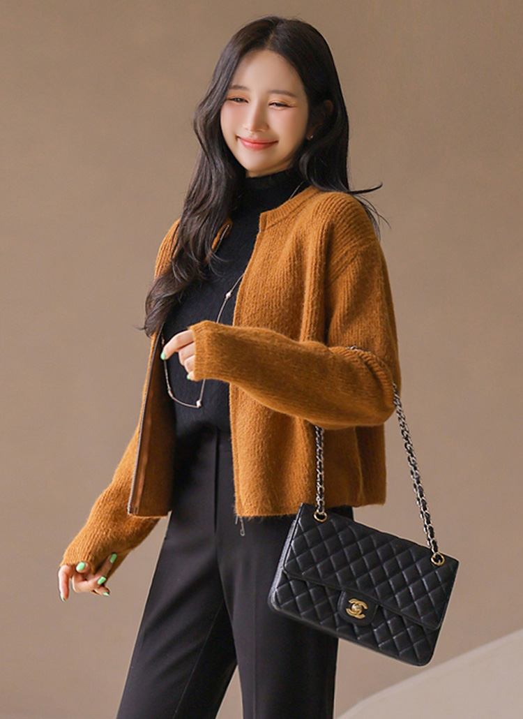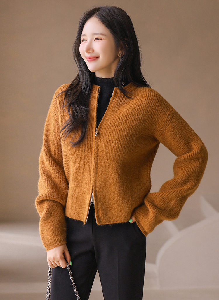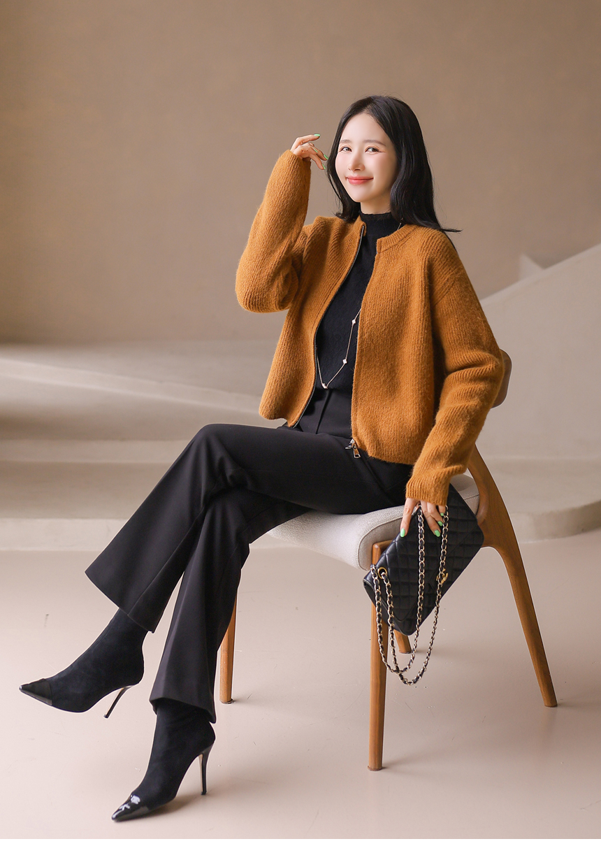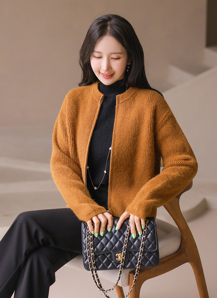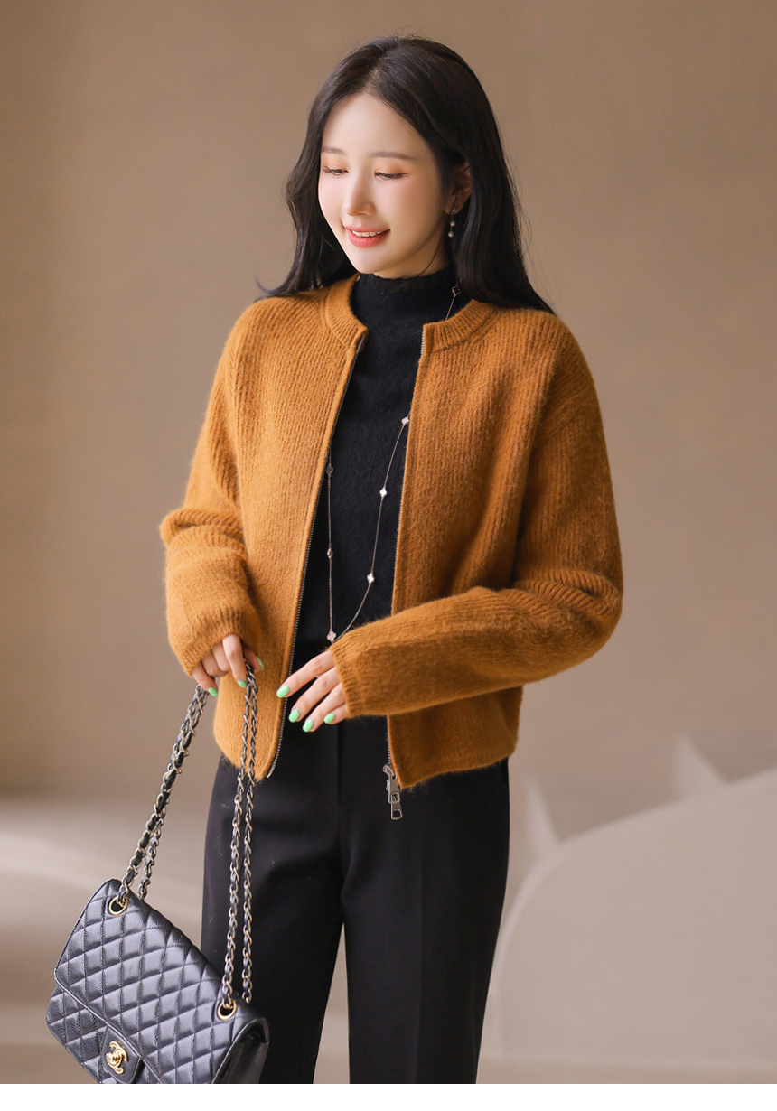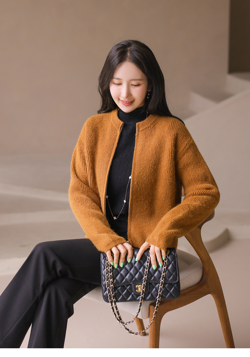 라라블 투웨이 지퍼 포슬포슬 니트 집업 가디건